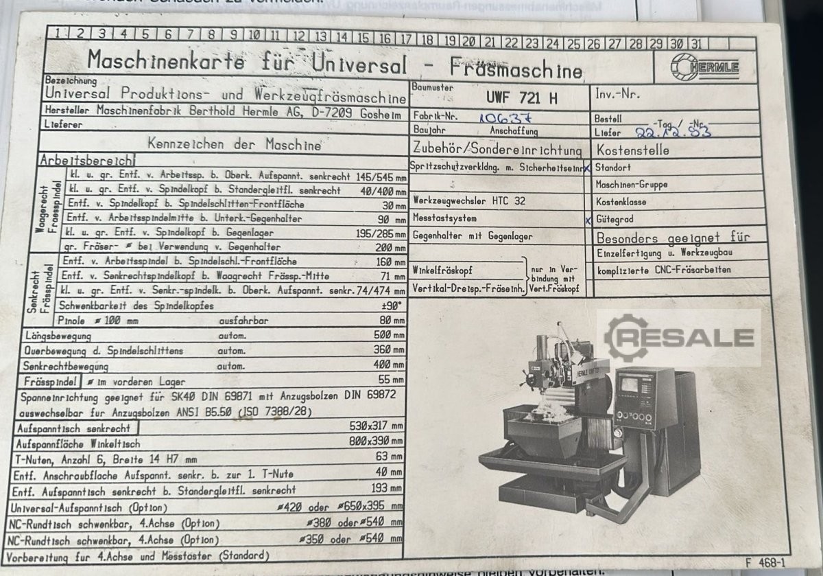 | 1987 | HERMLE | UWF 721 CNC | 6500 EUR | [Jan 2014] |