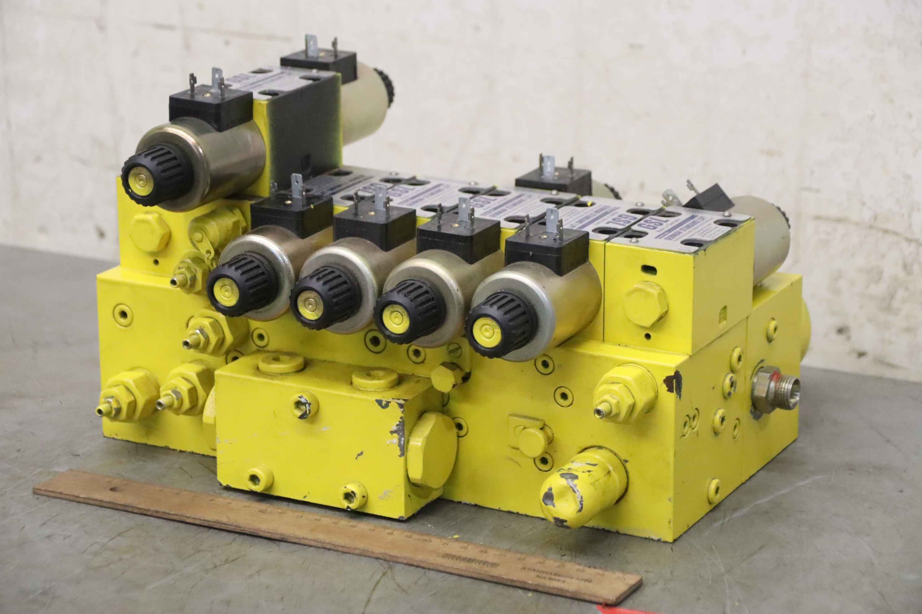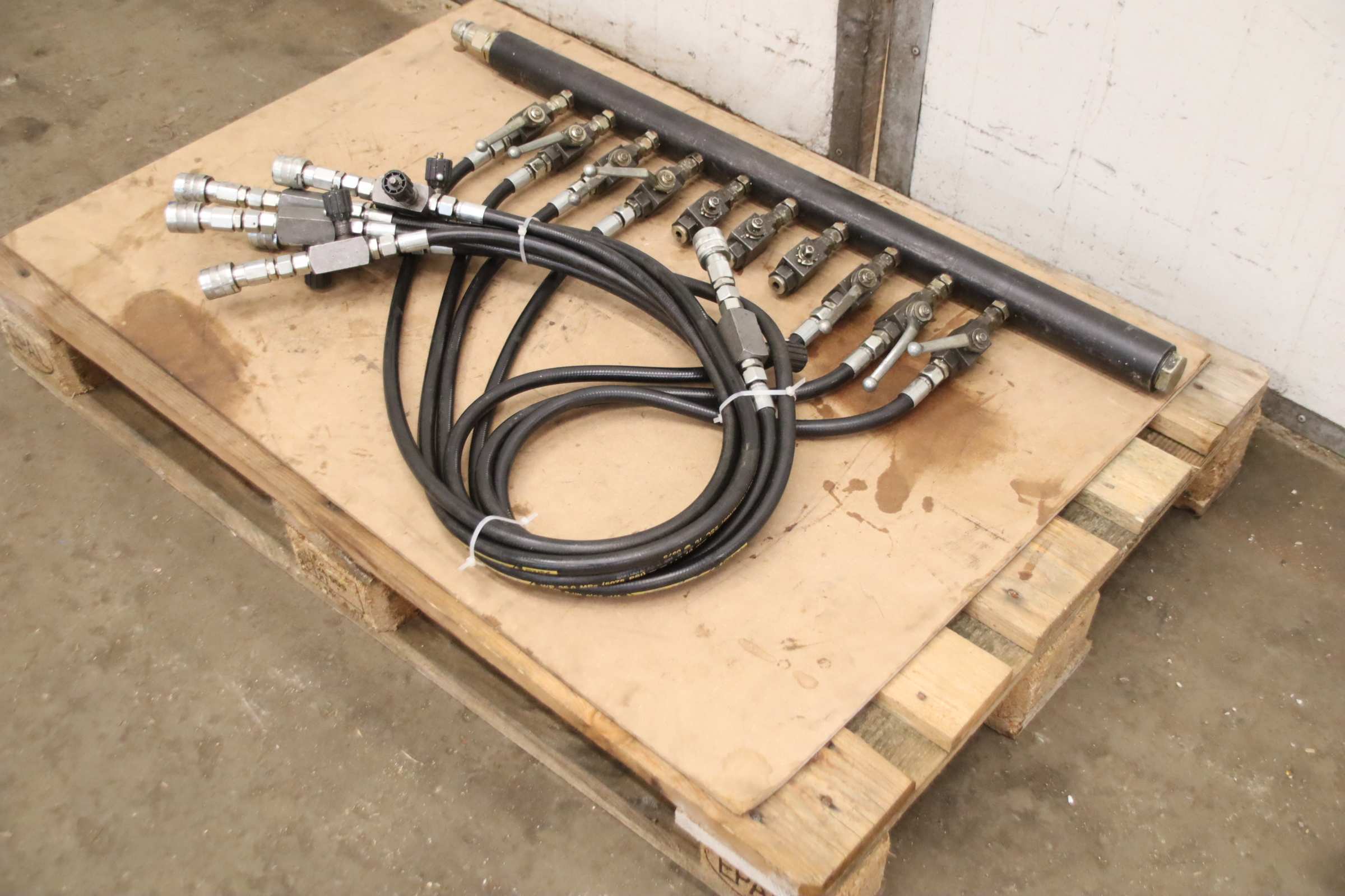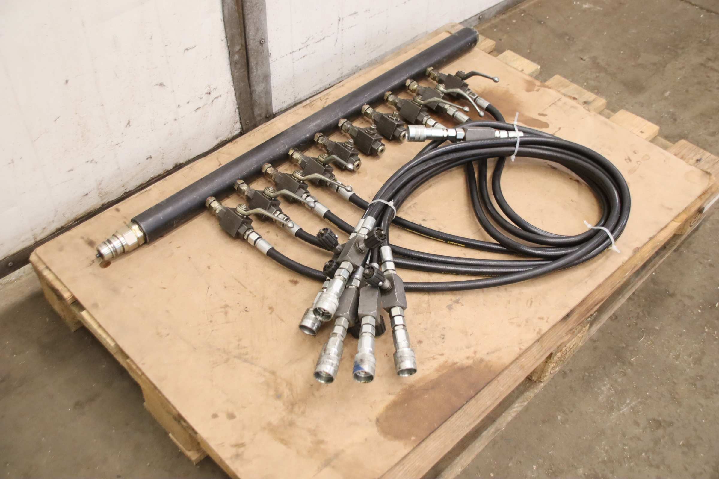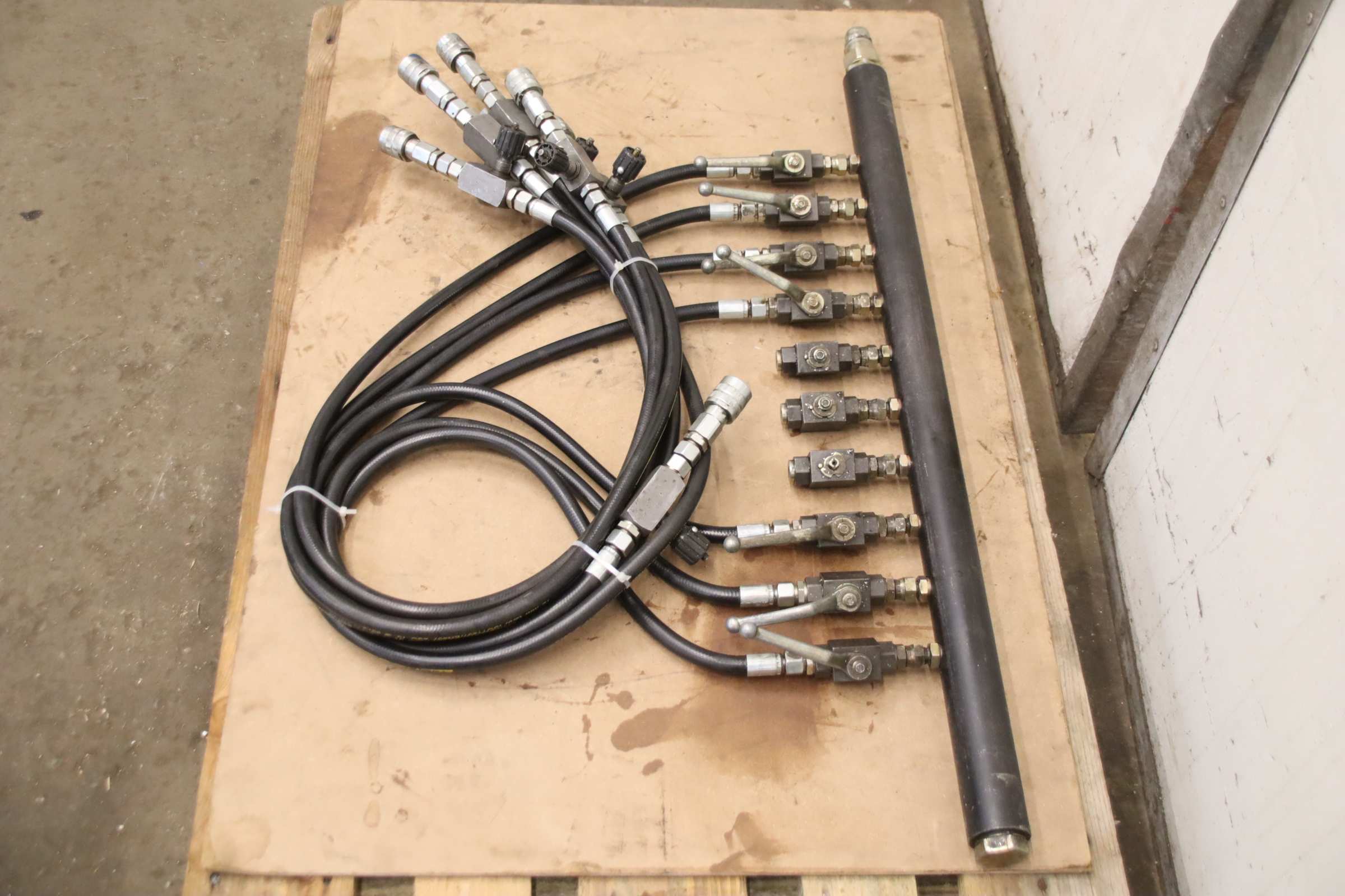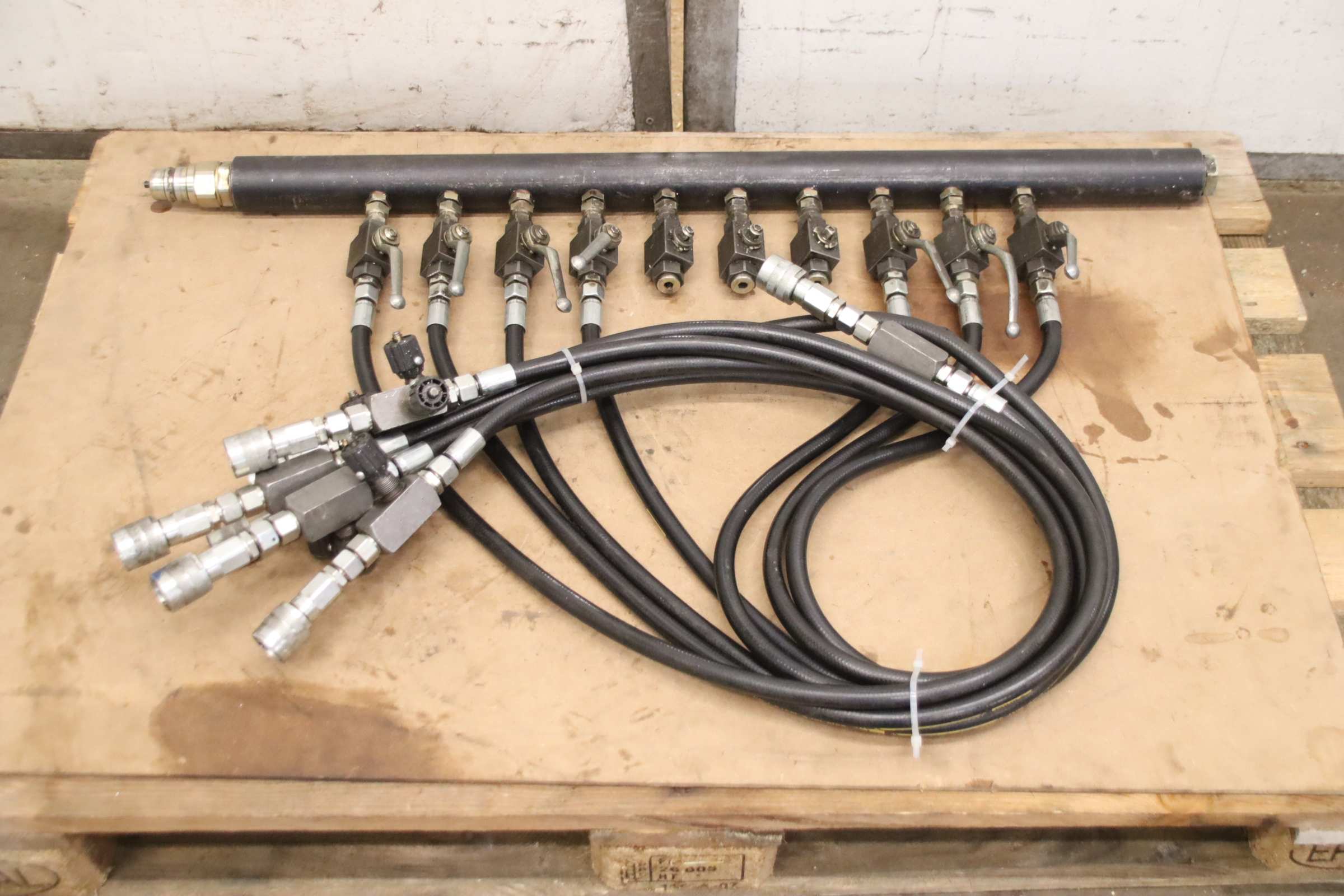 Hydraulik Verteilerblock, Hydraulikverschraubung, Hydraulik T-Verteiler, Hydraulikverteiler, e metro Verschraubung -Hydraulik Verteiler: Hydraulischer Verteiler 10 Stationen -Typ: 3000-2 1/2-76,1 A3L -Belegung: 7x Absperrventil mit Schlauchleitung und Regelventil -Druck: bis 350 bar -Abmessung: 1055/680/H150 mm -Gewicht: 31 kg