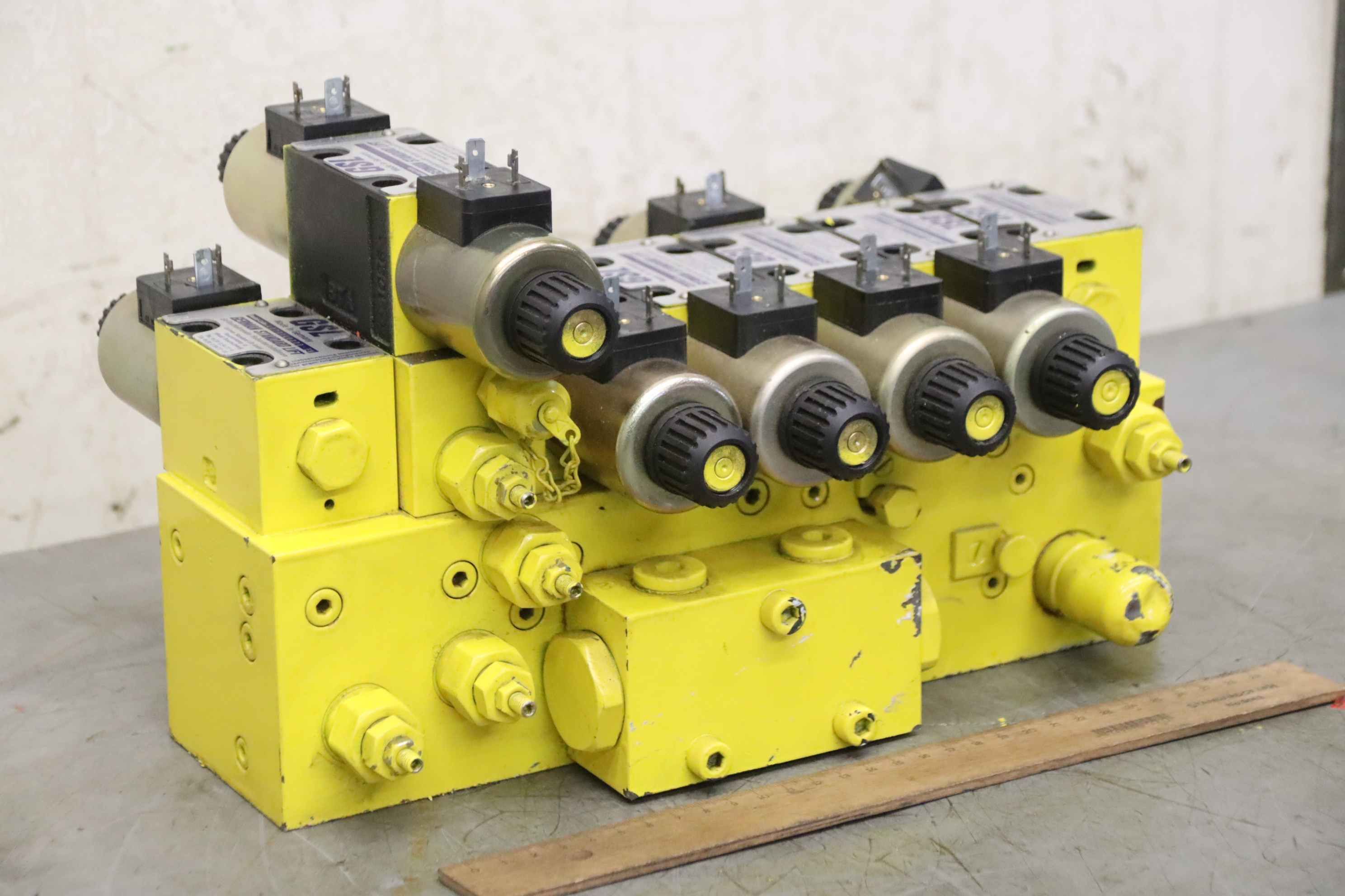 Ventilblock, Steuerblock, Hydrauliksteuerblock, Steuergerät, Steuerventil -Hersteller: GSL(German Standard Lift), Steuerblock für den Antrieb von Arbeitsbühnen -Model-Code: Ventile 4070... siehe Fotos -Abmessungen: 340/300/H400 mm -Gewicht: 40 kg