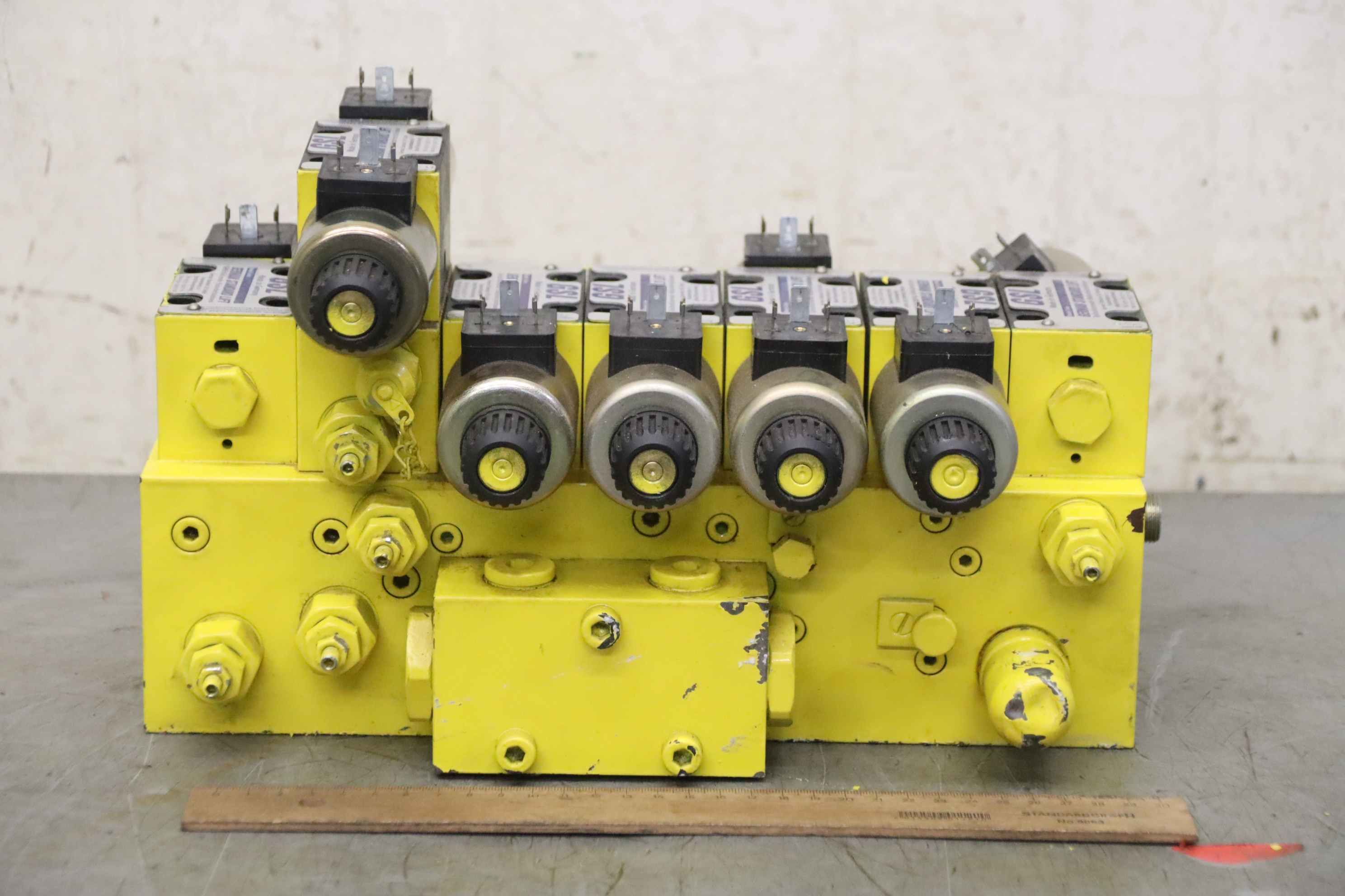 Ventilblock, Steuerblock, Hydrauliksteuerblock, Steuergerät, Steuerventil -Hersteller: GSL(German Standard Lift), Steuerblock für den Antrieb von Arbeitsbühnen -Model-Code: Ventile 4070... siehe Fotos -Abmessungen: 340/300/H160 mm -Gewicht: 38 kg