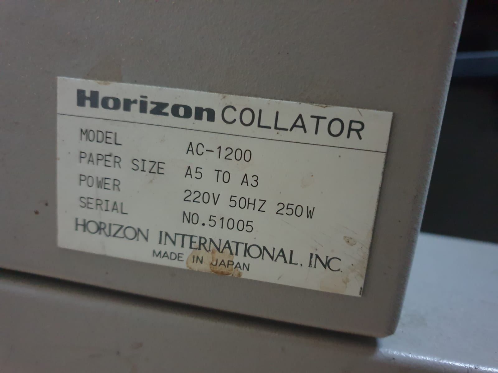 Preise: verkaufte Horizon Collator AC-1200 + ähnliche Horizon-Modelle