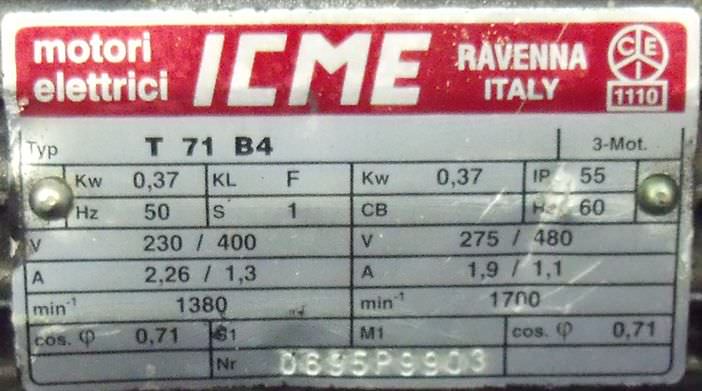 Maschinentyp: Getriebemotor 0,37 kW 98 U/min