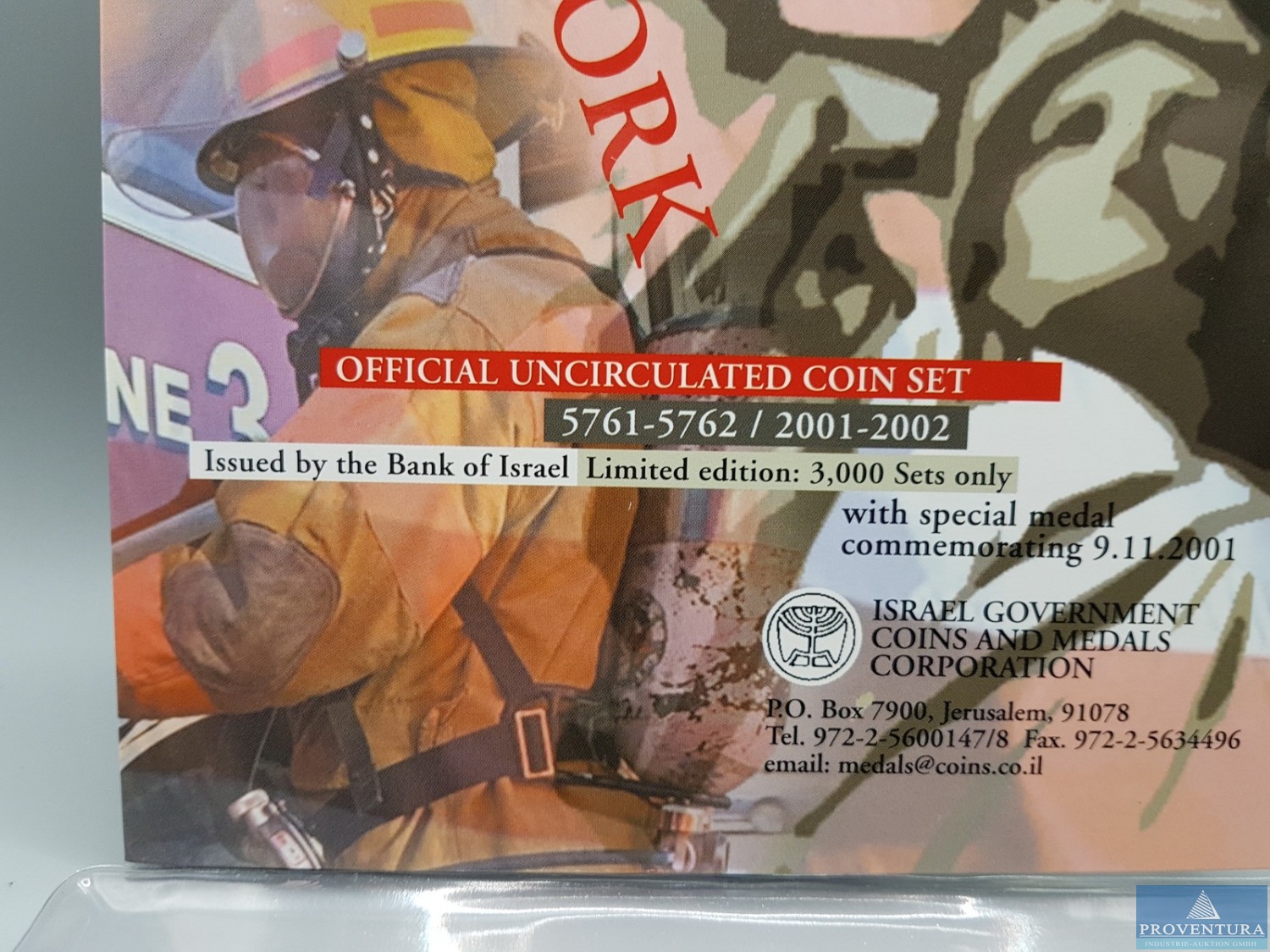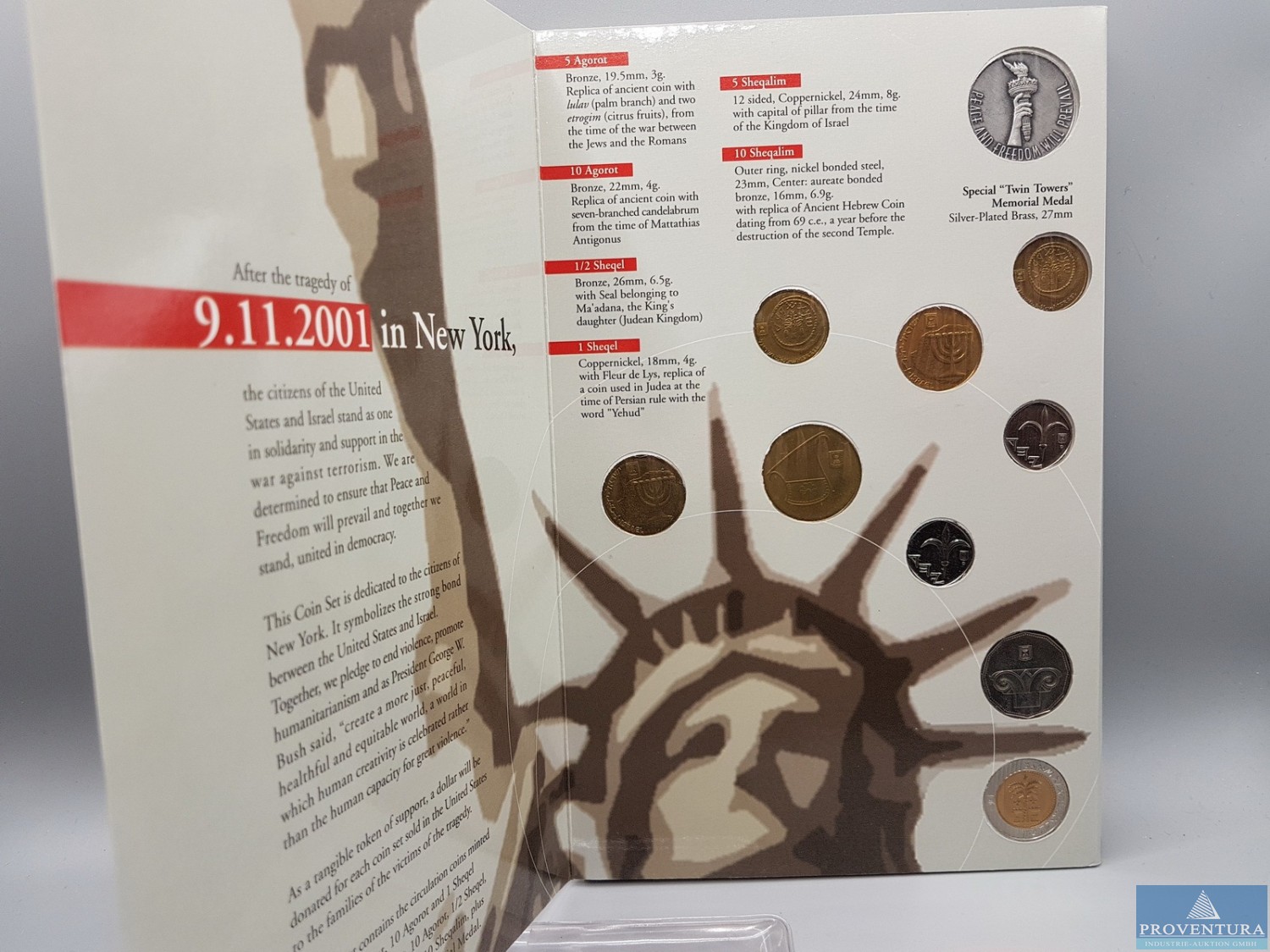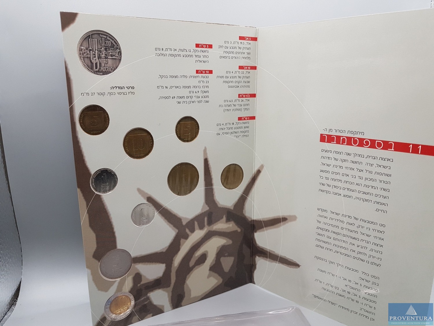 KMS Israel 2001 Tragödie 9/11 5 Agorot - 10 Shekel st, Auflage 3.000 Sätze