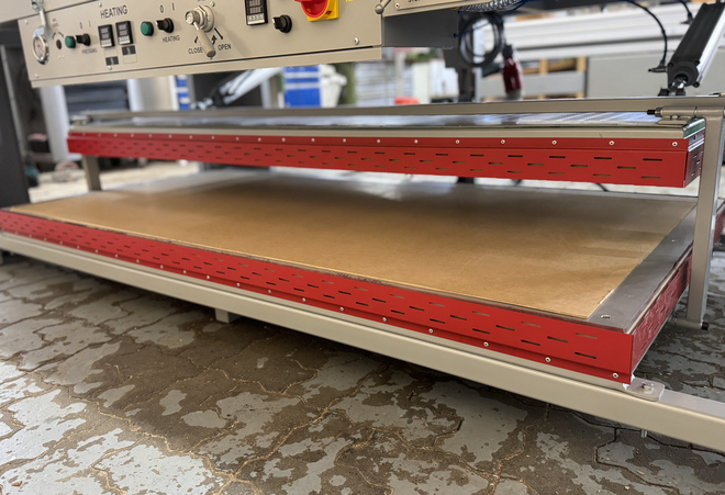 Aluminium Platten. Pneumatischer Antrieb des Heizsystems.