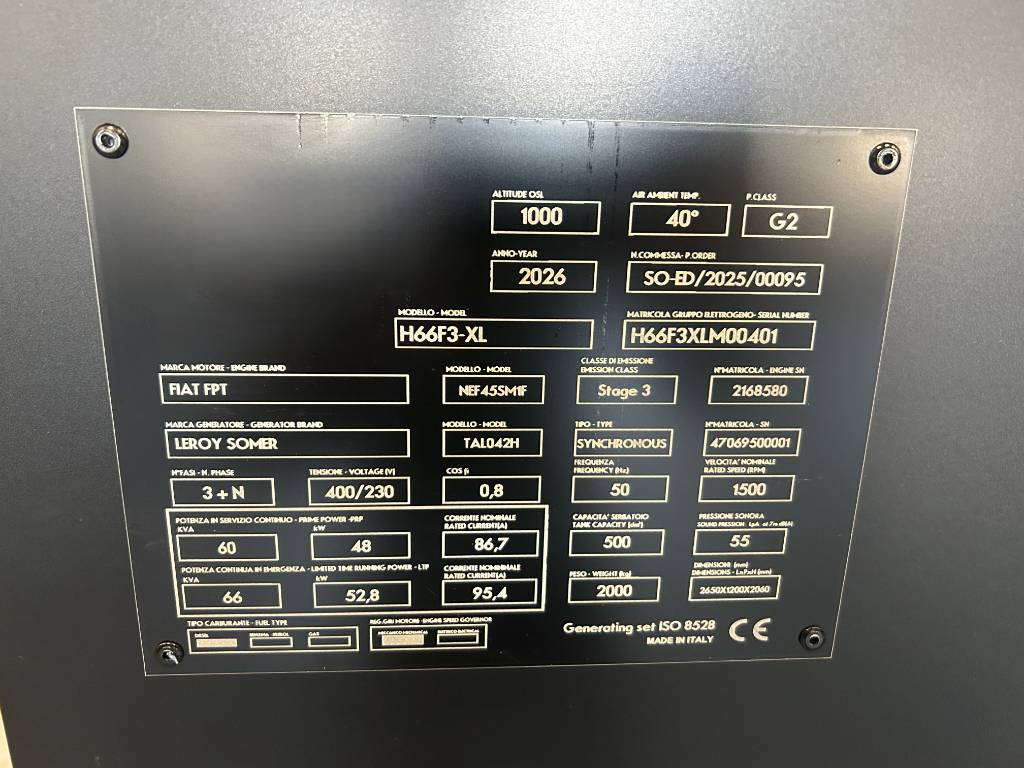 | 2026 | IVECO | 100 kVA | 16800 EUR |