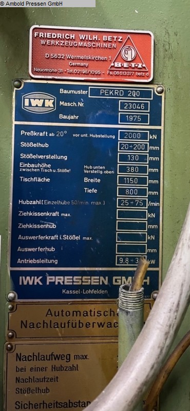 Exzenterpresse - Einständer IWK PEKRD 200