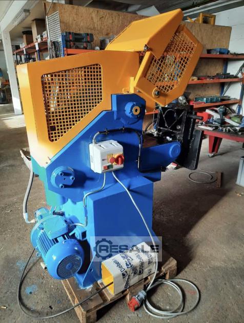 Gebrauchte JMC McIntyre JMC 320. Die JMC 320 verfügt über einen mechanisch einstellbaren Niederhalter. Der Scherenkopf wird für einzelne Schnitte oder kontinuierliches Schneiden mit einem Fußpedal bedient. Der Scherenkopf ist mit einem Sicherheitskorb geschützt. Messerlänge: 320 mm Messeröffnung: 180 mm Schneid Kapazität: 67 Tonnen Rundeisen ST 37: 50 mm Durchmesser Anzahl Hübe bei viertel Öffnung: 70 / min Abmessungen L x B x H: 1370 x 720 x 1280 mm Gewicht: 660 Kg Antrieb: 7,5 Kw / 380 V Bedienung : Fußpedal