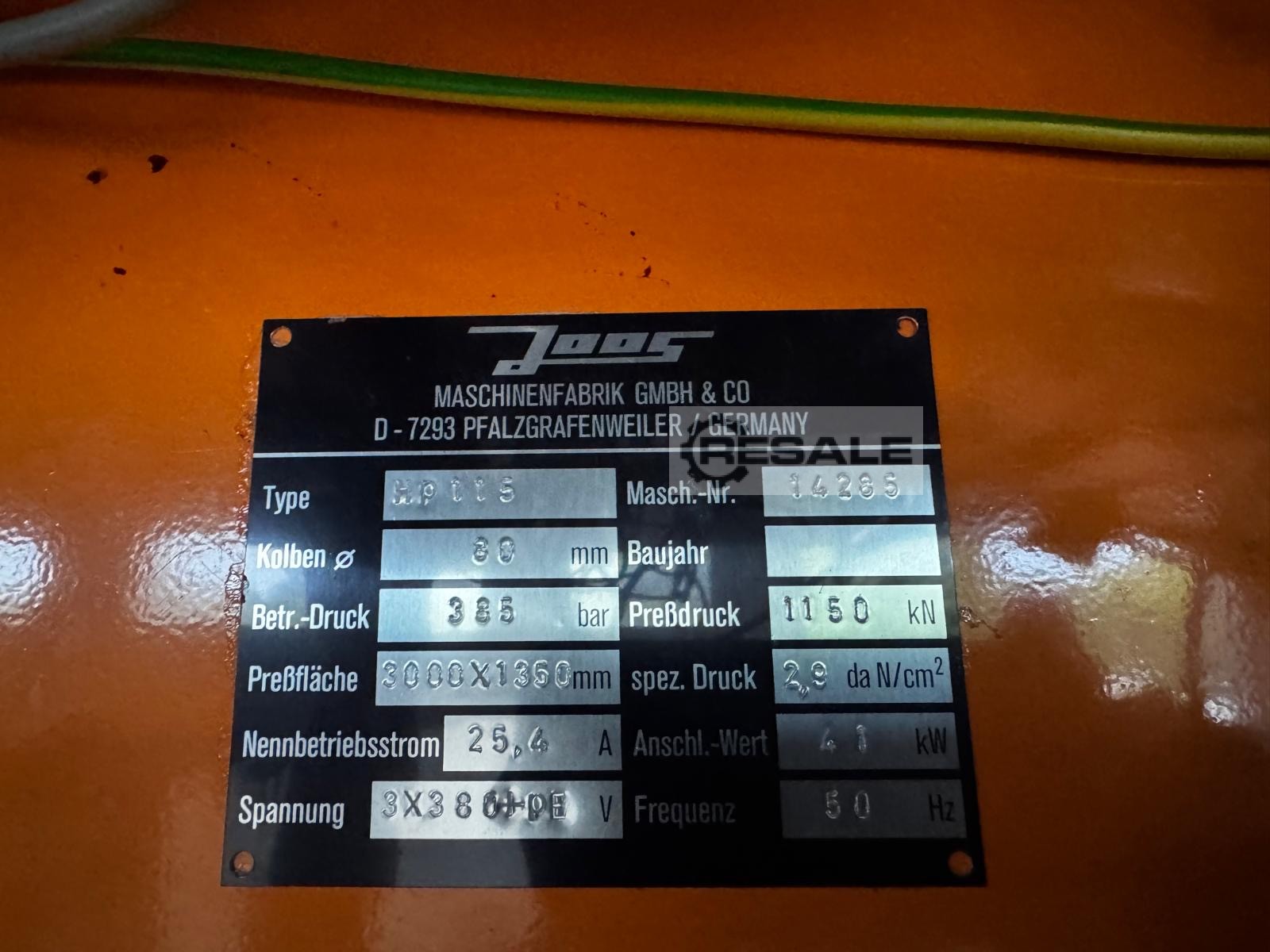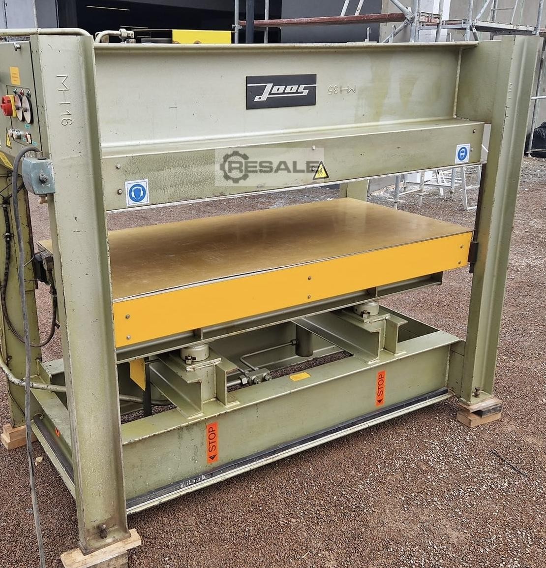 Gebrauchte JOOS HP 65/1. Plattengröße: 2200 x 1100 mm Öffnungsweite: 350 mm Anzahl Etagen: 1 St. Heizung: elektrisch Spezifischer Pressdruck: kg/cm² Gesamtpressdruck: 65 to Motorleistung: 1,1 kW Maße (Länge/Breite/Höhe): 2540 x 1280 x 1900 mm Maschinengewicht ca,: 2500 kg Baujahr: Baujahr: - Schwenktaster - Heizplatten goldeloxiert Die Daten fü, dieses Inserat wurden erstellt mit ModulMWS - die Maschinenverwaltung von LogoTech oHG.