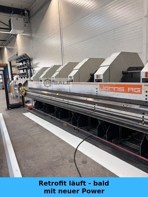 Schwenkbiegemaschine JORNS MAXI LINE 200SW wurde im Jahr 2007 in der Schweiz gebaut. Die Maschine, die für das Präzisionsbiegen von verschiedenen Blechsorten mit einer maximalen Länge von 6400 mm konzipiert ist, ist eine HIGH-Variante, die im Vergleich zum Standardmodell eine um bis zu 25% höhere Arbeitsgeschwindigkeit bietet. Während ihres Einsatzes wurde die hydraulische Schwenkbiegemaschine JORNS MAXI LINE 200 regelmäßig gewartet. Alle beweglichen Teile und der Biegebalken wurden durch Originalteile des Herstellers ersetzt. Technische Daten der CNC-Schwenkbiegemaschine JORNS MAXI LINE 200SW - Steuerungssystem CNC 600 - maximale Blechlänge: 6400 mm - Maximale Blechdicke: 2 mm - Hinterer Messtisch Typ 91 mit AC-Servomotor - Bereich des hinteren Messtisches: 1000 mm - Rollenschere SM 3 - Fußschalter - maximaler Hydraulikdruck: 250 bar - Motorleistung: 7,5 kW - Spann ...