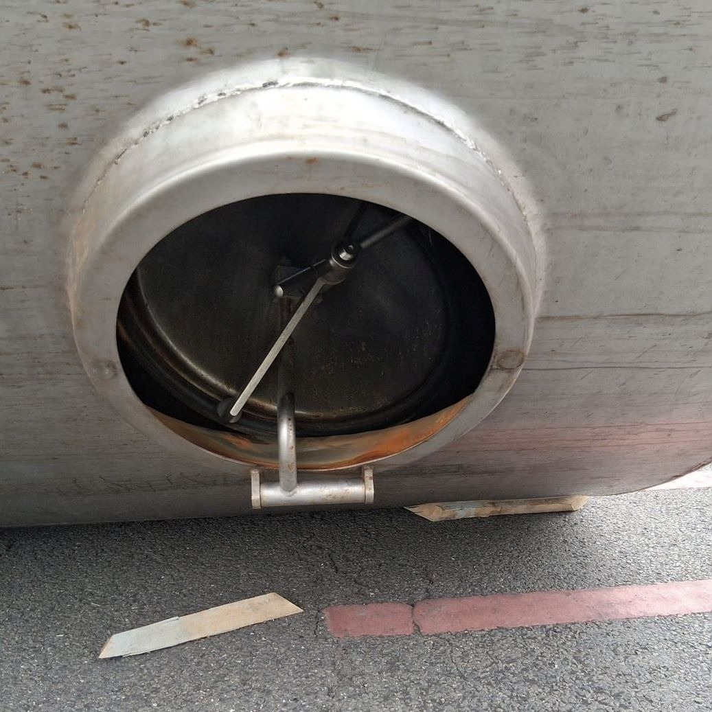 Hersteller: Jorns Behälterbau,Zustand: gebraucht,Volumen: 150.000,Unterer Boden: Flachboden mit Gefälle,Oberboden: Kegelboden,Bauform: stehend,Standform: Flachboden mit Gefälle,Durchmesser außen: 4.000,Gesamthöhe: 11.600,Mannloch / Dom: im Zylinder,Typenschild: Ja,Ausstattung: Be-/Entlüftung, Kranösen,Auslauf: vorhanden,Bemerkungen: Leichte Beule im Zylinder,letzter Verwendungszweck: Lebensmittel,Werkstoff Produktberührend: V2A 1.4301 (AISI304),Bodenlager: Nein,Stromstörer: Nein,Bodenlager: Nein,Stromstörer: Nein