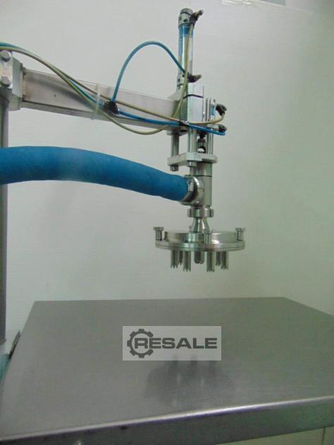 Gebrauchte Verpackungsmaschine mit Spender für Jumbo Eiskuchen und Desserts. Baujahr 1996. Doppelkopf (doppelseitige Fütterung) + Topping + Saftpumpe.