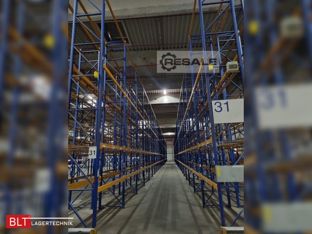Jungheinrich Delta – 14,10 lfm | Höhe 7,50 m | Boden + 3 Ebenen | Fachlast 2700 kg | Palettenregal gebraucht kaufen
