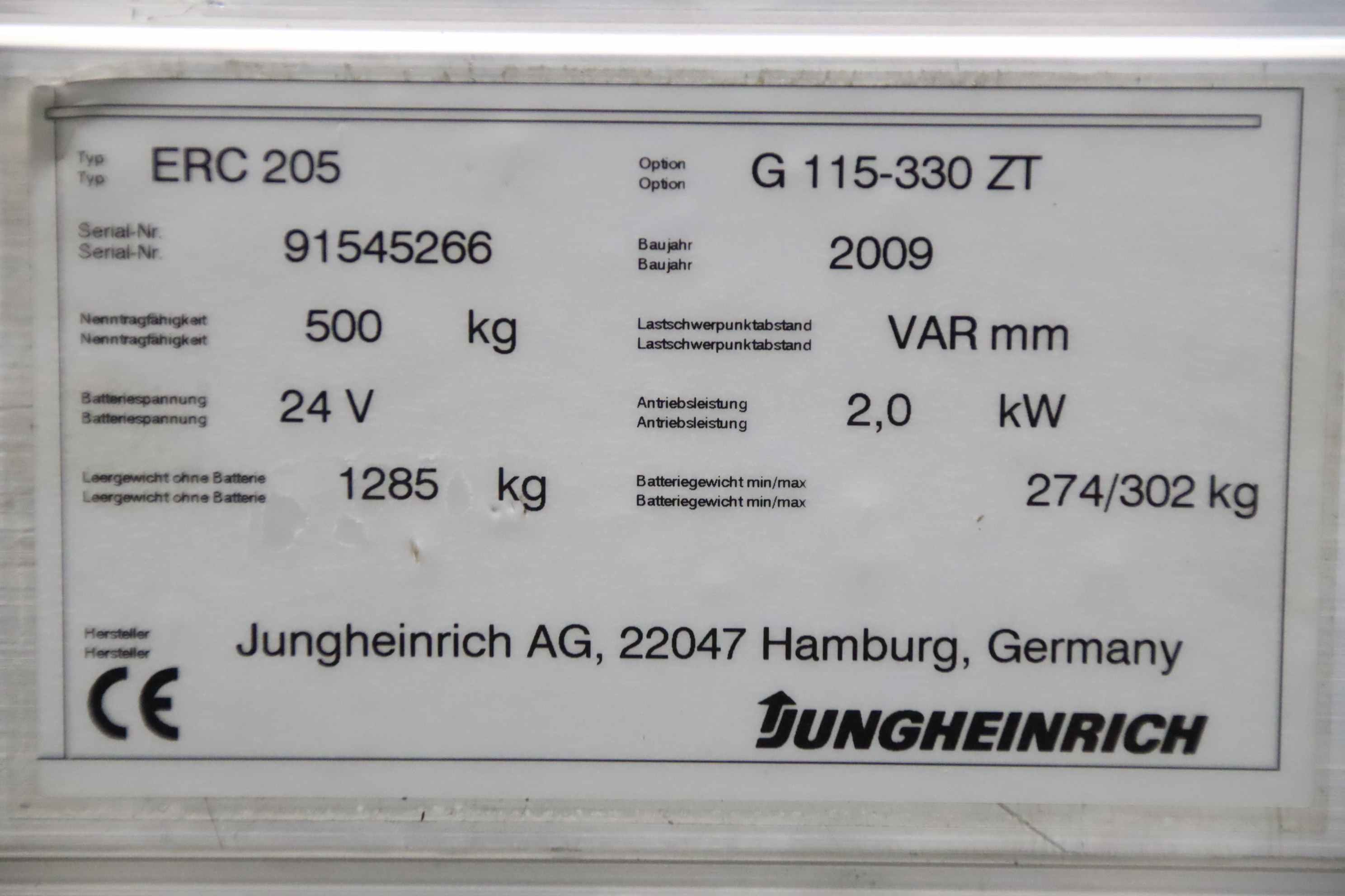 | 2009 | JUNGHEINRICH | ERC 205 GF106-G3 | 950 EUR |