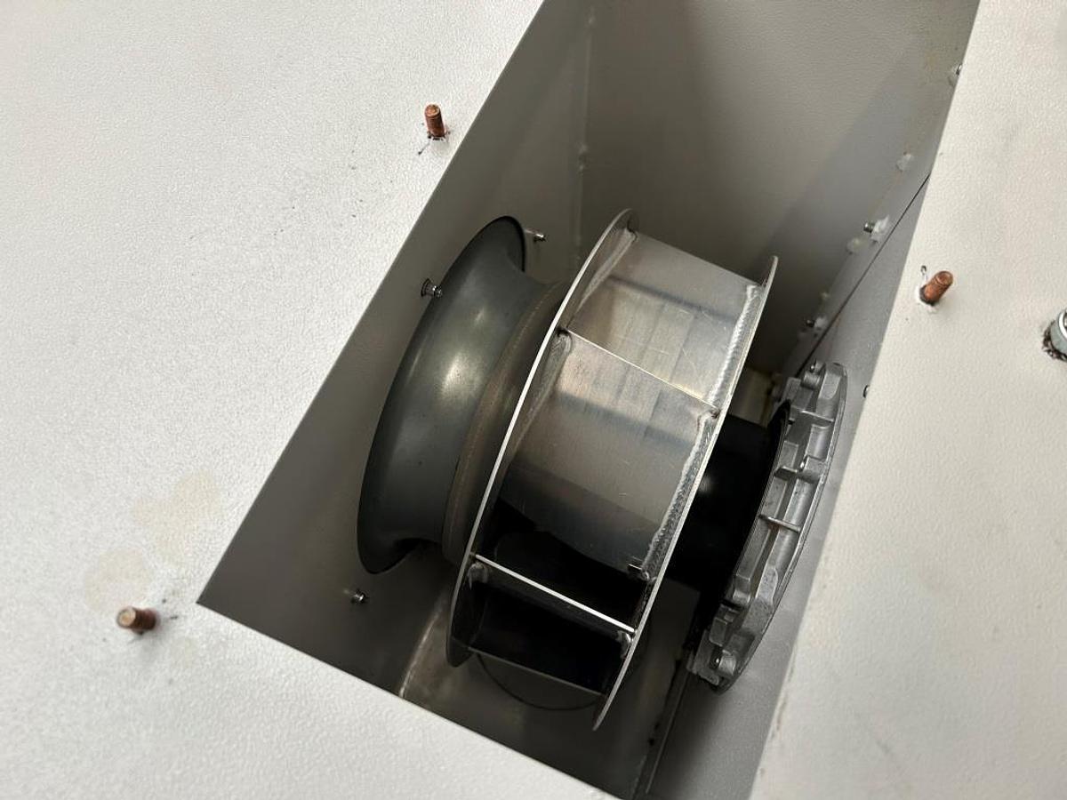 Industrie - Ventilator / Gebläse Hersteller: DSD Unternehmensbereich Lufttechnik (heute: Ferrostaal Air Technology GmbH) Typ: DRMU 1000 R Baujahr: 1992 Volumenstrom: 35.000 m³/h Druck: 6.500 Pa Drehzahl min.: 2.035 U/min Drehzahl max.: 2.160 U/min Leistung: 75 kW Luftdichte: 1.1222kg/m³ Temperatur max.: 90 °C Neupreis: 68.000,00 DM netto / Stück In sehr gutem Zustand!