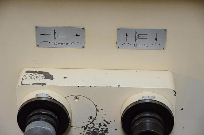 Milling axes, dividers, grinding wheels, High: 1765 mm, Tall: 1765 mm, Weight: 2500 Kg, Width: 1100 mm, Long: 2570 mm, Ø tool: 250 mm, Total power: 7.5 kva., Ø of the grinding wheel: 250 mm, Travel of table: 400 mm, Height of points: 125 mm, Height of centers: 125 mm, Max. Ø to be sharpened: 250 mm, Power wheel motor: 3 Kv., Manufacturing number: 1905.04, Ø max to sharpen: 250 mm, Grinding wheel motor power: 3 Kv., Distance between points: 635 mm, Table tour: 400 mm, Revolutions of the wheel: 1750/2150/2850 mm, Length between points: 635 mm, Maximum length to sharpen: 400 mm, Revolutions of the grinding wheel: 1750 / 2150 / 2850 mm, Radial travel axis wheelhead: +35 / -65 mm, Maximum length to be sharpened: 400 mm, Vertical travel of the wheel: 175 mm, Vertical travel of the grinding wheel: 175 mm, Radial travel of the grinding wheel shaft: +35 / -65 mm, Cone holder shaft clamping pieces: ISO 40, Min/max propeller pitch angle: 0-45º, Cone for holding the workpiece shaft: ISO 40, Speed continuous longitudinal table: From 30 to 1000 mm / min., Longitudinal speed of the continuous table: From 30 to 1000 mm/min., Specification: From mother strawberry