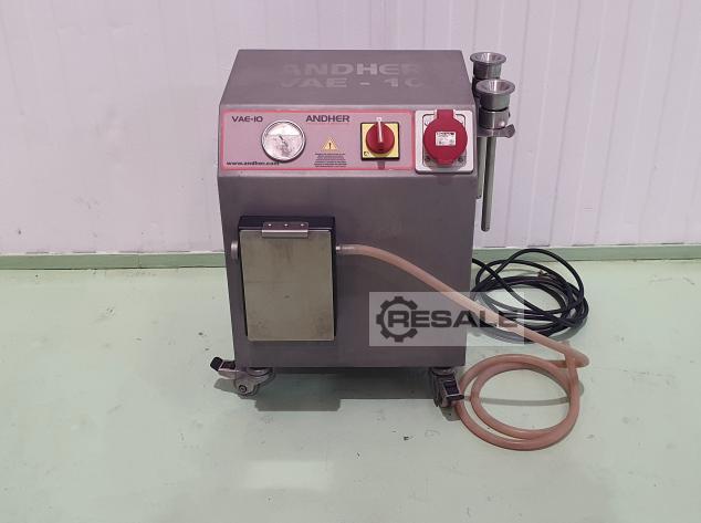 Gebrauchte ANDHER VAE-10. LIQUIDATION eines speziellen Vakuumsystems für Kolbenfüller ohne Vakuum. Hergestellt von ANDHER Modell VAE-10. Sein Status ist der der Wiederveröffentlichung (Anlass). Patentiertes System für die Vakuumfüllung mit konzentrischen Trichtern, die an jeder Art von Stopfmaschine befestigt sind. Verbessern Sie das Finish und die Qualität auf natürliche Weise, sparen Sie Darm! Die Maschine ist bereit zum Anschließen und Arbeiten. Dank der auf Design und Spitzentechnologie basierenden Fertigung ist ANDHER VAE-10 ein patentiertes System, das Folgendes erreicht: - Mehr Qualität im Produkt, indem die Luft im Inneren des Gehäuses ohne Zusatz von Chemie eliminiert wird. - Einsparung von Prozesszeit, da der Darm nicht punktiert werden muss, um die Luft abzusaugen. - Erhebliche Einsparungen bei der Hülle, indem der Innenraum verdichtet und vollständig mit Flei ...
