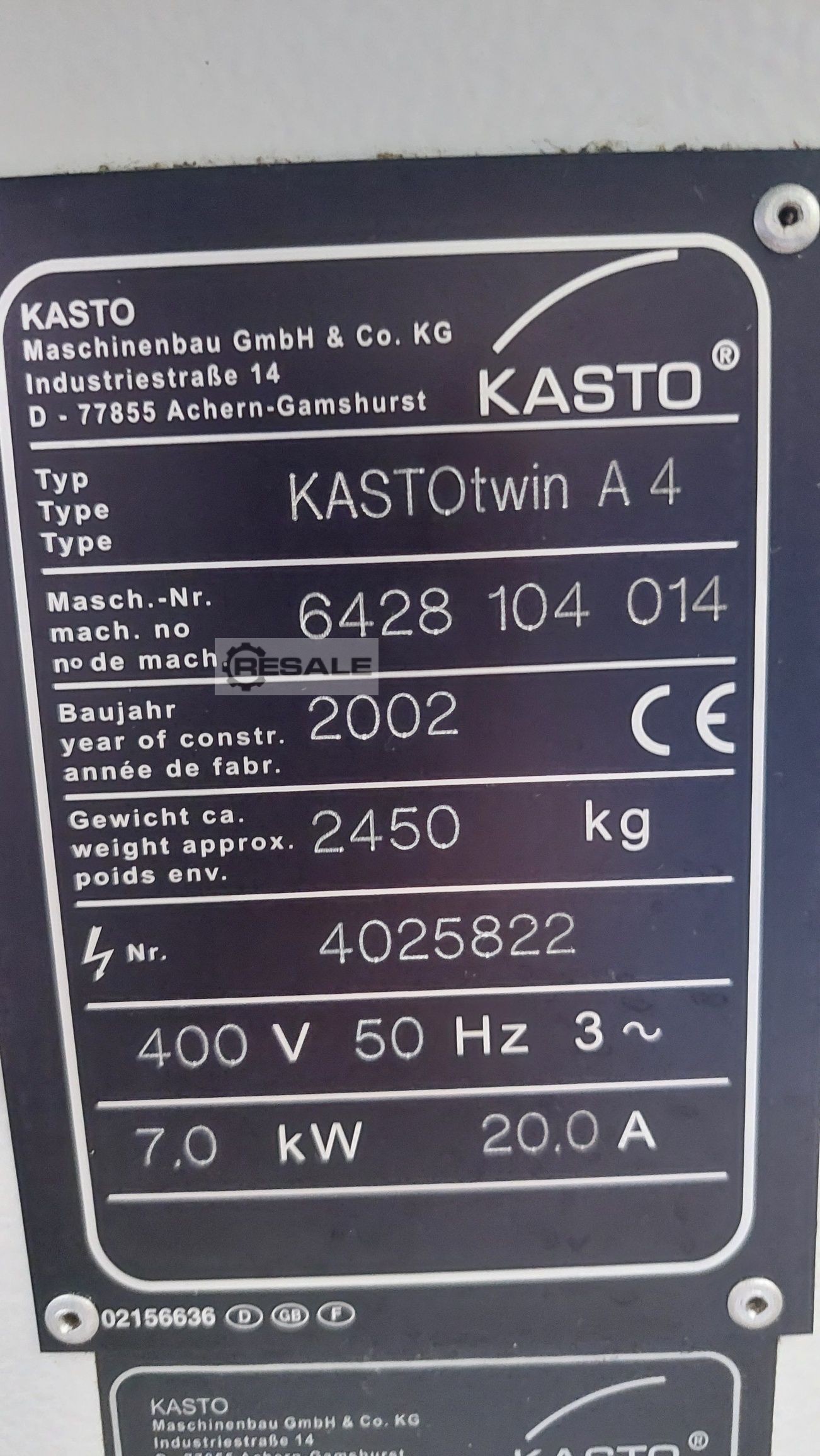| 2006 | KASTO | Twin A4 | 16900 EUR | [Feb 2021] |