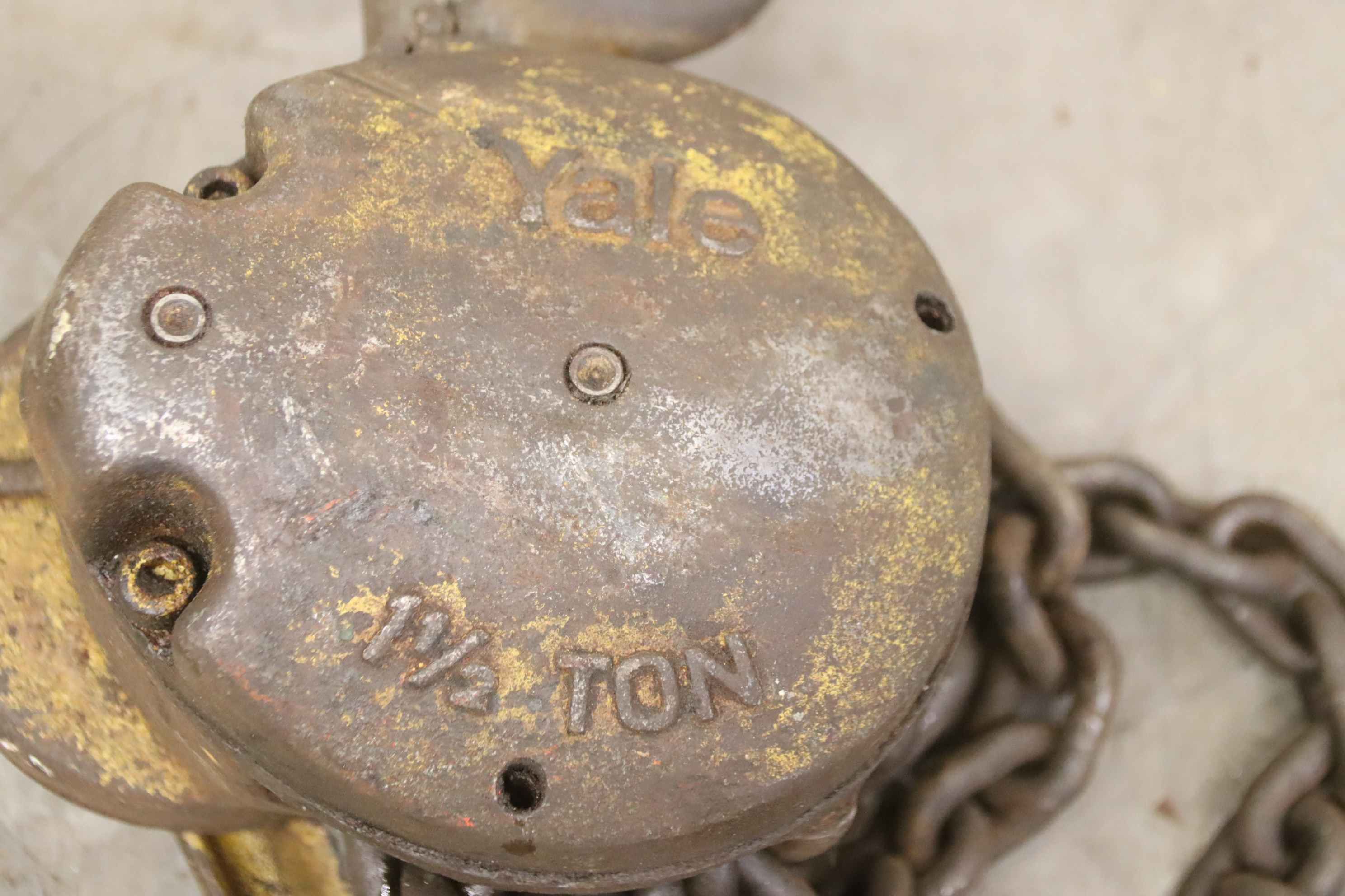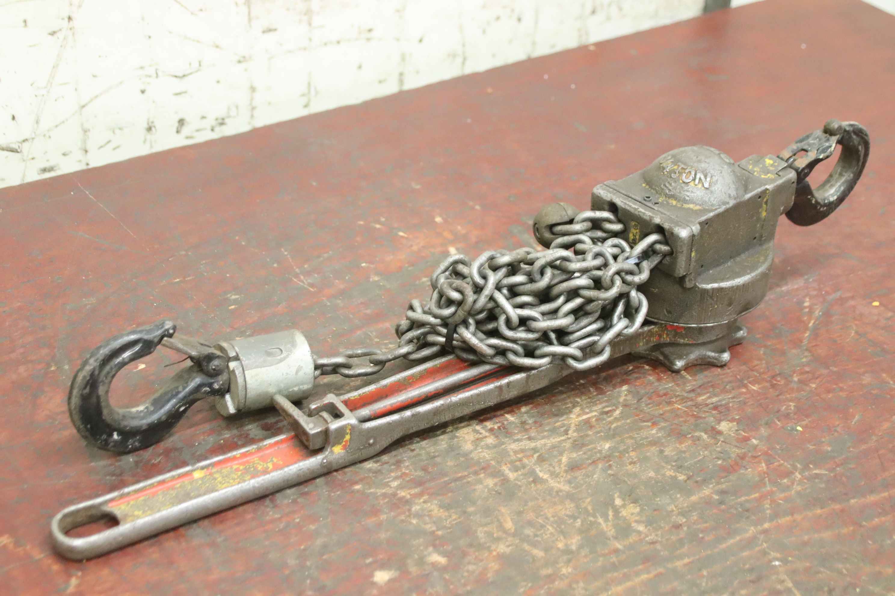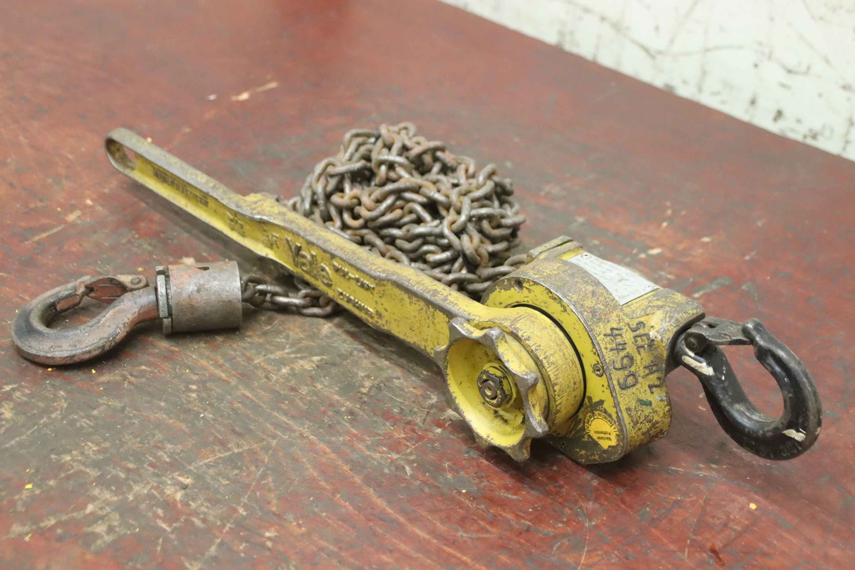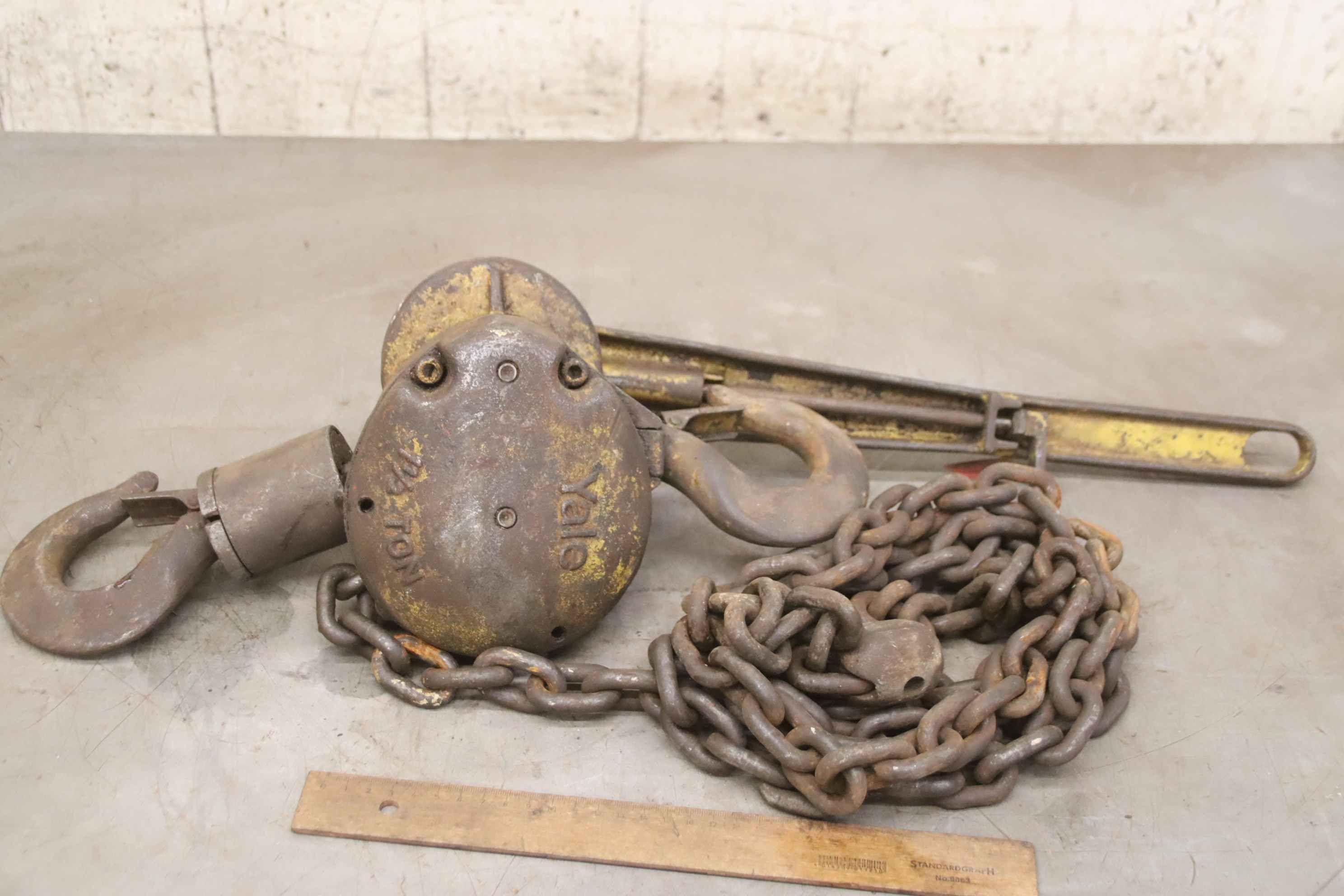 Hebelzug, Kettenzug, Kran, Montagezug, Montagekettenzug, Stirnradflaschenzug -Hersteller: Yale, Kettenzug Stirnradflaschenzug -Tragkraft: 1/2 Ton -Kettenlänge:3,36 m -Anzahl: 1 Stück -Transportabmessungen: 360/165/H250 mm -Gewicht: 13,1 kg