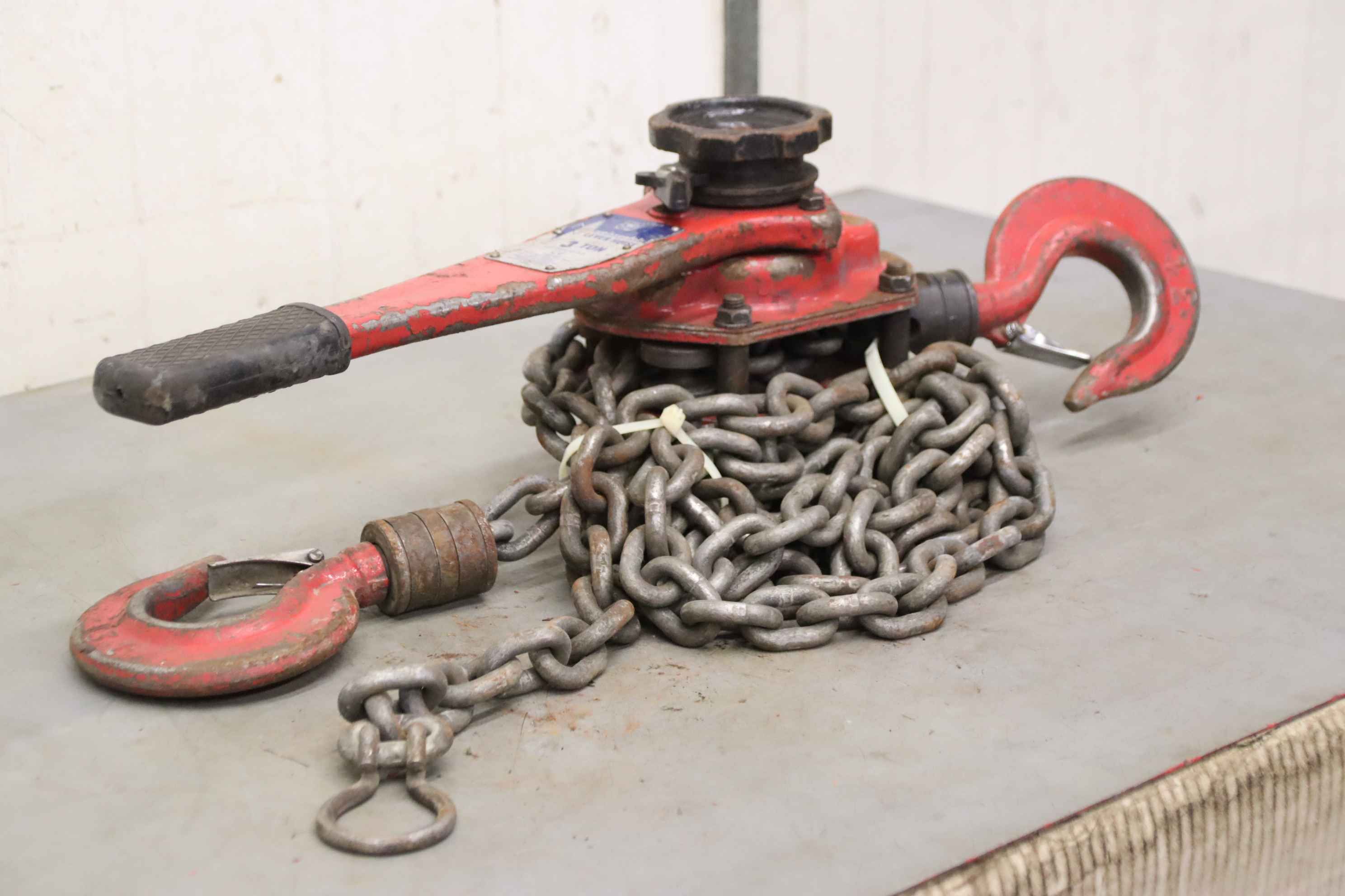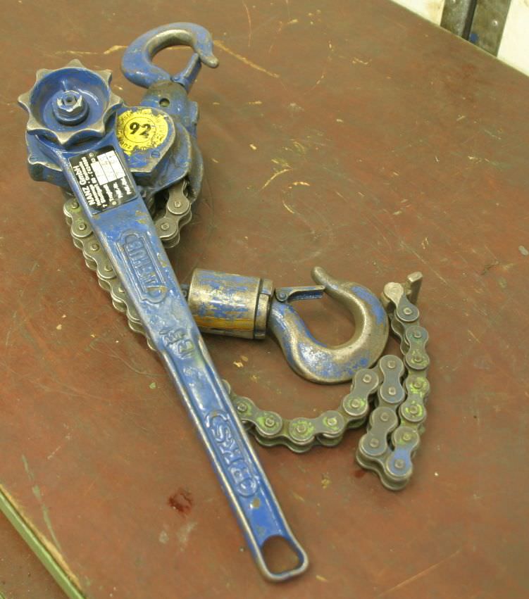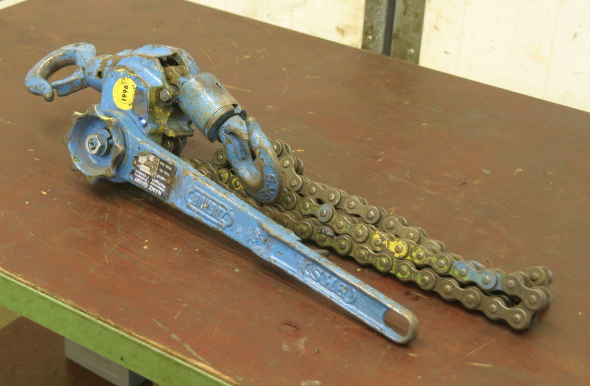 Hebelzug, Kettenzug, Kran, Montagezug, Montagekettenzug -Tragkraft: 3000 kg -Kettenlänge: 1,5 m -Anzahl: 1x Kettenzüge vorhanden -Preis: pro Stück -Abmessungen: 700/170/H190 mm -Gewicht: 19 kg