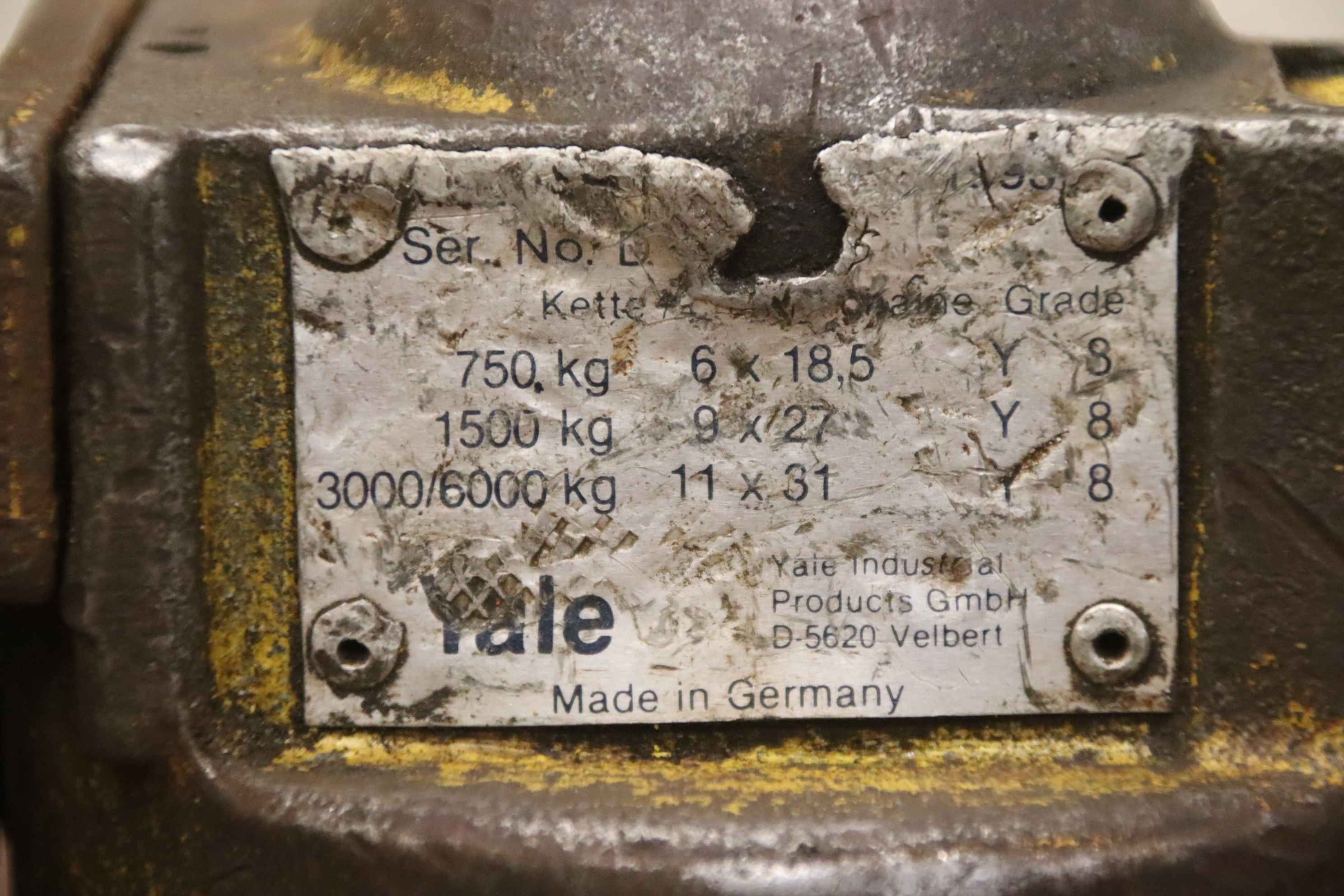 Hebelzug, Kettenzug, Kran, Montagezug, Montagekettenzug -Hersteller: Yale, Hebel-Kettenzug -Tragkraft: 3/4 Ton -Kettenlänge: 6 m -Anzahl: 1 Stück -Transportabmessungen: 610/160/H150 mm -Gewicht: 11,7 kg