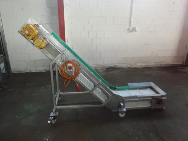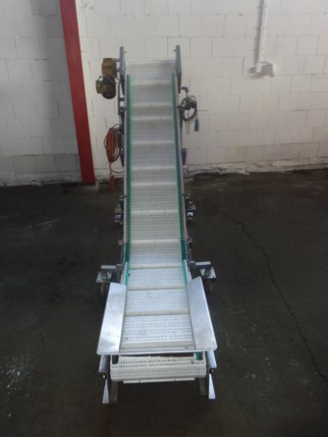 Edelstahlausführung Einlaufhöhe: 400 mm Auslaufhöhe: 1.700 mm Mit Antriebsmotor Mit Kunststoffmattenkette Auf Rollen fahrbar