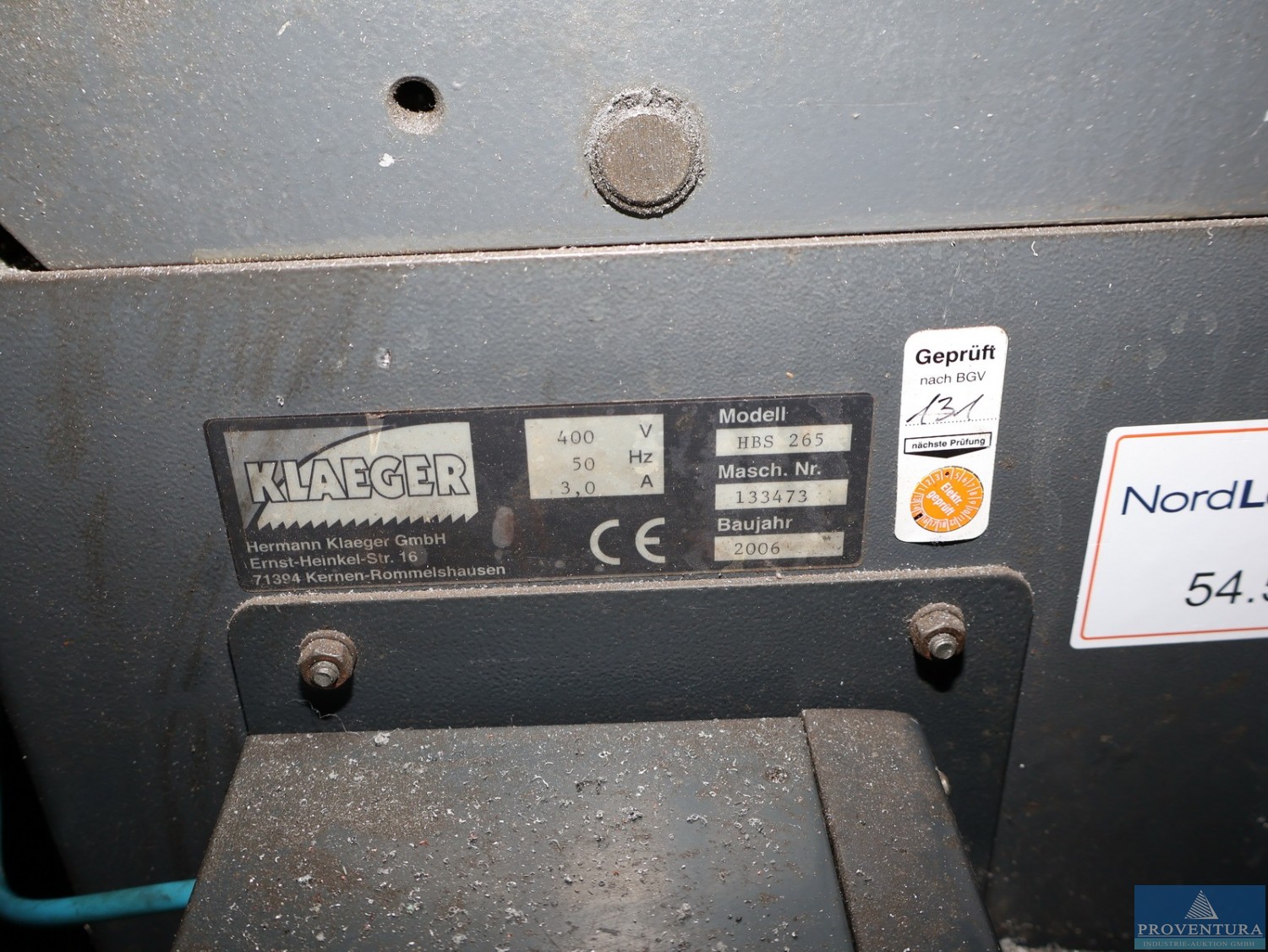 Schnittdurchmesser: 220 mm Sägeblattlänge: 425 mm Abschnittlänge max.: 2500 mm Gesamtleistungsbedarf: 0,95 kW Maschinengewicht ca.: 219 kg Raumbedarf ca.: m KLAEGER Bügelsägeautomat Type PLUS 220, Bj. 2005 Schnittbereich ca. 300 mm mit aufwändigem Materiallängenanschlag 2.500 mm und Rollenbahnen vorne und hinten Sägeblattlänge 425 mm, hydr. Vorschub 16-32 m/min, Schraubstock auf Gehrung verstellbar Kühlmitteleinrichtung, höhergestellt Die Daten fü, dieses Inserat wurden erstellt mit ModulMWS - die Maschinenverwaltung von LogoTech oHG.