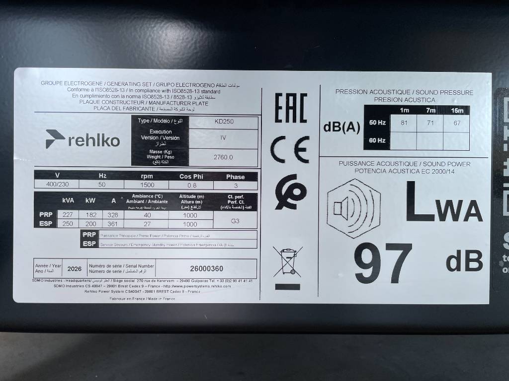 Modell: (Rehlko) KD250 - 250 kVA Generator - DPX-17011