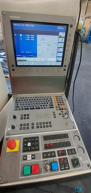 Verfahrweg - x: 1000 mm Verfahrweg - y: 500 mm Verfahrweg - z: 610 mm Drehzahlbereich: 8000 1/min Gewicht: 5,5 to. Steuerung: HEIDENHAIN iTNC 530 Werkzeugwechseleinrichtung: 24 Pos. Werkzeugaufnahme: SK 40 Tischgröße: 1.200 x 500 mm max. Tischbelastung: 850 kg Gesamtanschlußleistung: 37 kW Raumbedarf ca. LxBxH: 2,65 x 2,1 x 2,9 m Vertikalbearbeitungszentrum IKZ, direktes Wegemesssystem, 3D Taster vorbereitet (ohne Taster), Späneförderer, ca. 21.200 Einschaltstunden, ca. 1.300 Spindelstunden