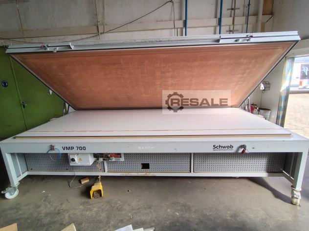 Gebrauchte Schwab VMP 700. Vacuum Membranpresse Gebrauchte Presse in Top Zustand Bj. 2011 Neue Vollkernplatte mit Vacuumbohrungen Pressbreite 1700 mm Presslänge 3700 mm