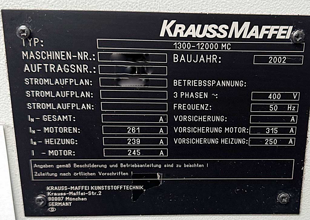 | 2003 | KRAUSS MAFFEI | KM 1300-8000 MC mit Kuka Robo | |