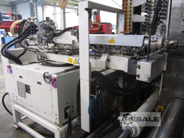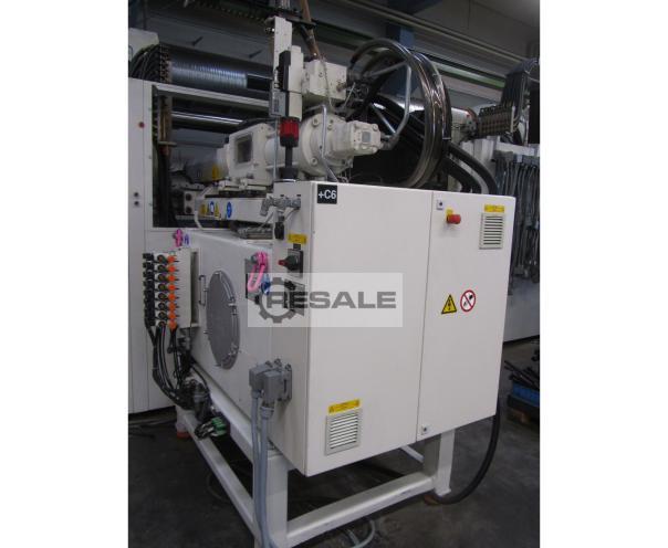 Gebrauchte Krauss Maffei KM 650-3500-700 CZ. Hersteller: Krauss Maffei Typ: KM 650-3500-700 CZ Baujahr: 2007 Steuerung: MC 4 Schließeinheit: Schließkraft: 650 t Öffnungsweg: 1150 mm Werkzeugeinbauhöhe min.: 600 mm Plattenabstand max. : 1750 mm Holmabstand (h x v): 1100 x 900 mm Plattenabmessungen (h x v): 1510 x 1370 mm Zentrierungen (Düsen- Auswerferplatte): 200 / 200 mm 1.Spritzeinheit: Schneckendurchmesser : 80 mm Spritzgewicht in PS. Max. : 1400 g Hubvolumen: 1543 ccm Einspritzdruck: 2205 bar 2. Spritzeinheit: Schneckendurchmesser: 45 mm Spritzgewicht in Polystyrol: 278 g Hubvolumen: 305 cm³ Einspritzdruck: 2.336 bar Zubehör: 2 x Luftventil 16 -fach Kaskade 3 x Kernzug an BWAP 3 x Kernzug an FWAP 20 x Heißkanalregelstellen Roboterschnittstelle: Euromap 67 Maße: Gesamtgewicht: 34.500 kg Gesamtgröße L x B x H: 7,8 x 2,5 x 2,5 m B ...