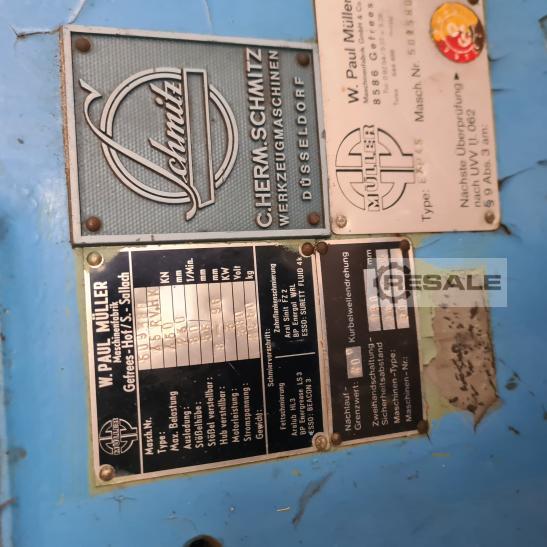 Gebrauchte MÜLLER WEINGARTEN SD63.11.25. Druck: 63 t Ständerweite: 0 mm Hub: 160 mm Tischfläche: 630 x 500 mm Einbauhöhe: 400 mm Gesamtleistungsbedarf: kW Maschinengewicht ca.: 5 t Raumbedarf ca.: m Die Daten fü, dieses Inserat wurden erstellt mit ModulMWS - die Maschinenverwaltung von LogoTech oHG.