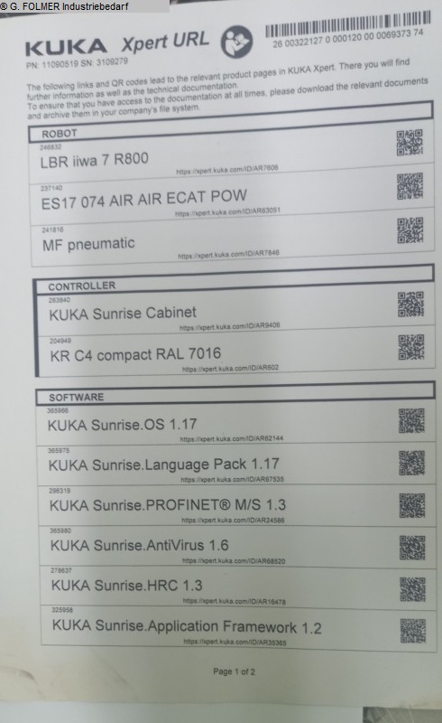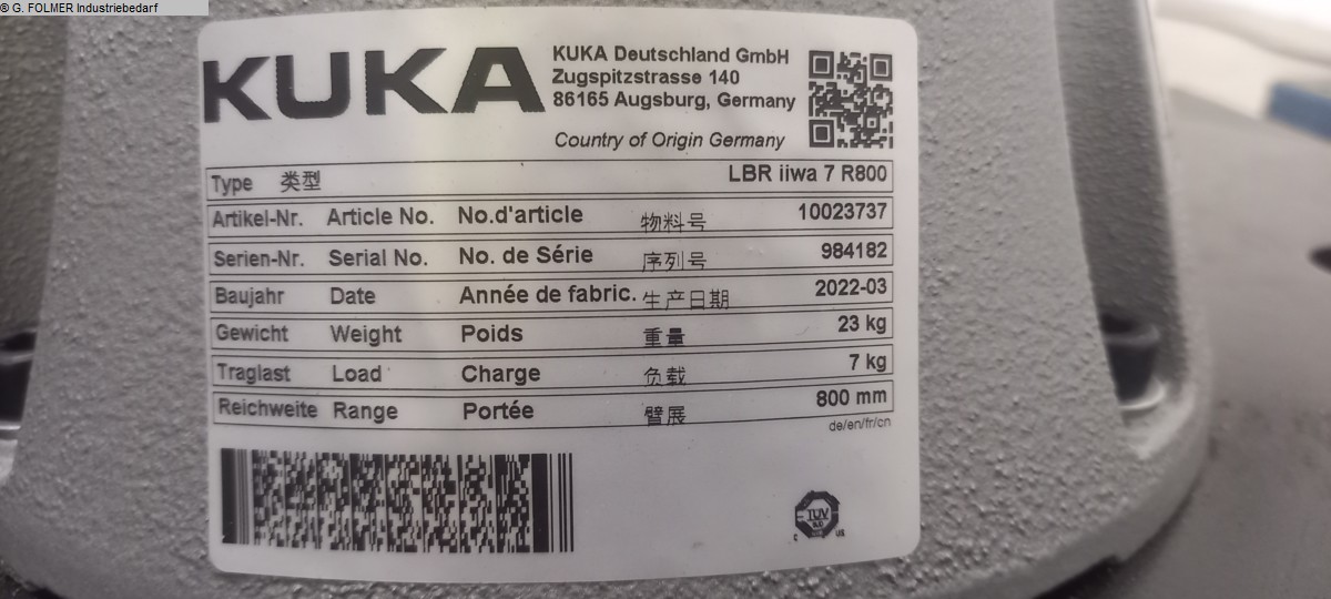 | 2016 | KUKA | lbr iiwa 14 r820 Cobot |