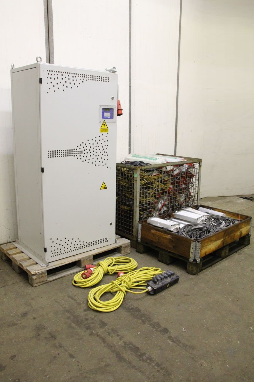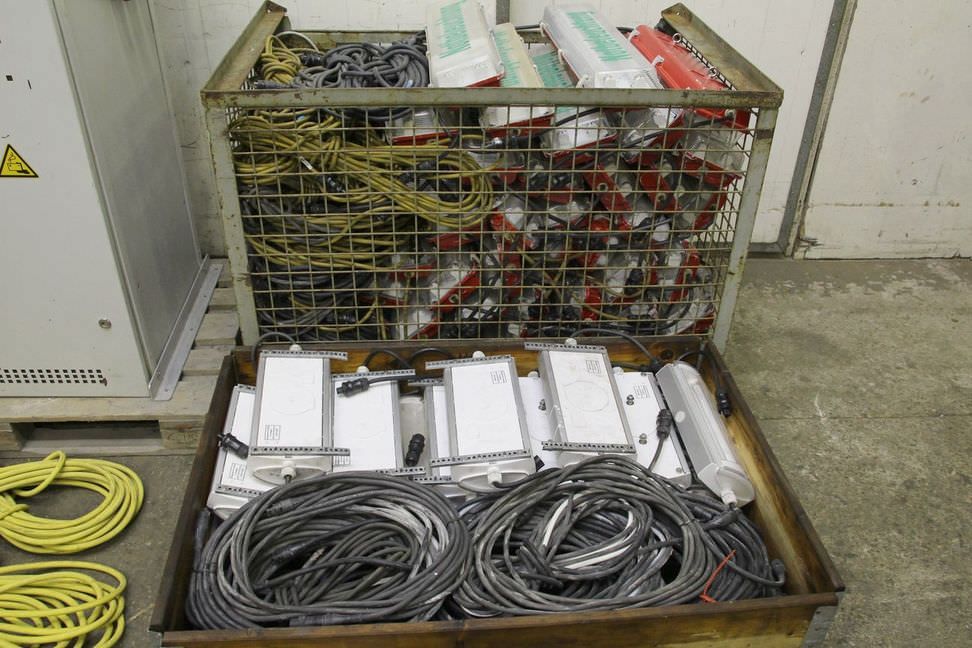 Stromversorgungssysteme, Baustellen-Notbeleuchtung, Rettungszeichenleuchte, Fluchtwegleuchte, Not- und Fluchtwegbeleuchtung, Notleuchten, Rettungswege -Notbeleuchtung mit Ladegerät und Steuerung und Batterien -Abmessungen große Lampen: 665/180/H120 mm 36 Stück -Abmessungen kleine Lampen: 420/170/H90 mm 14 Stück -2x Posten Lampen: mit Ladegerät und Steuerung vorhanden -Preis: pro Posten -Gewicht: 820 kg/Posten