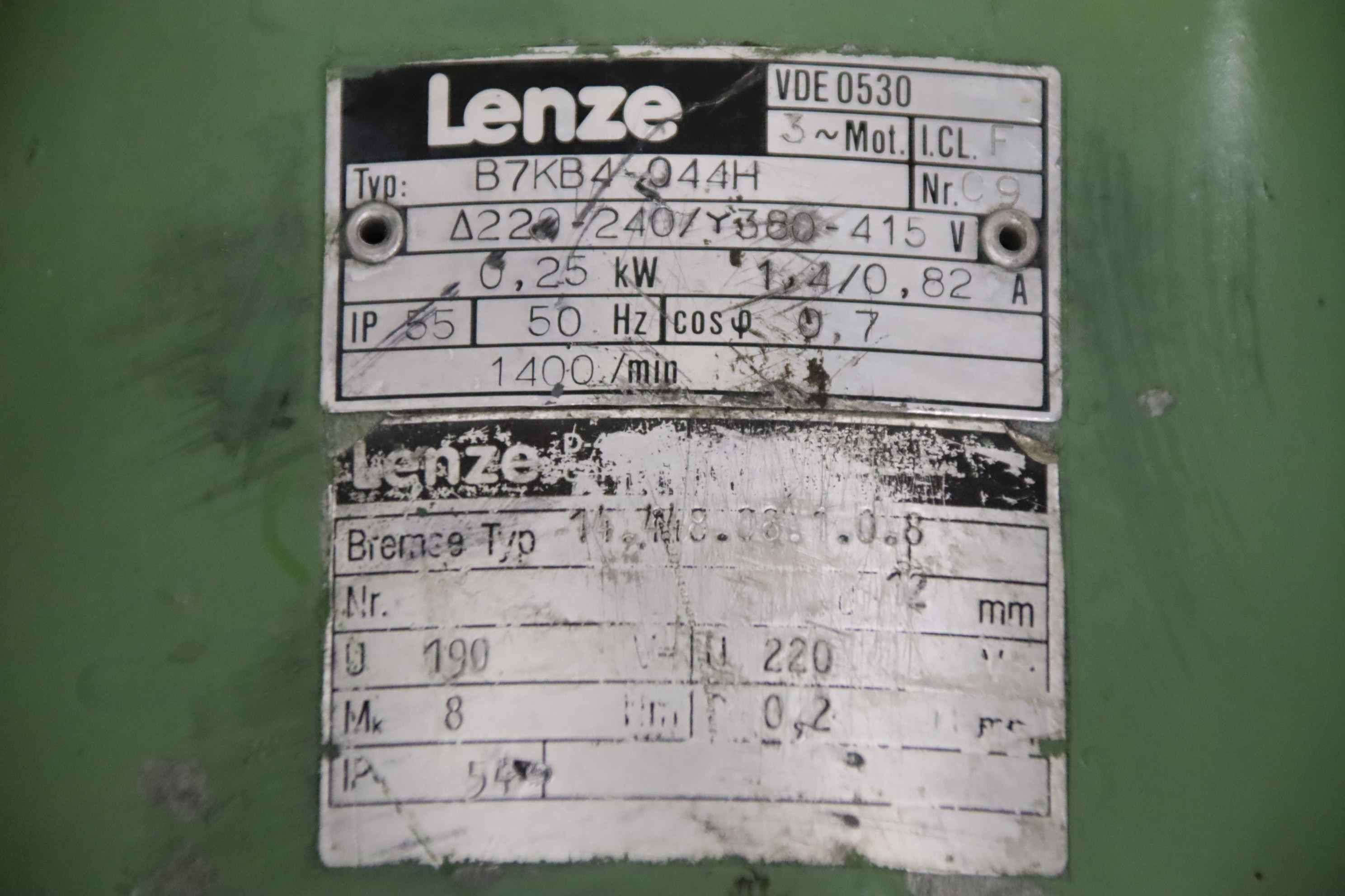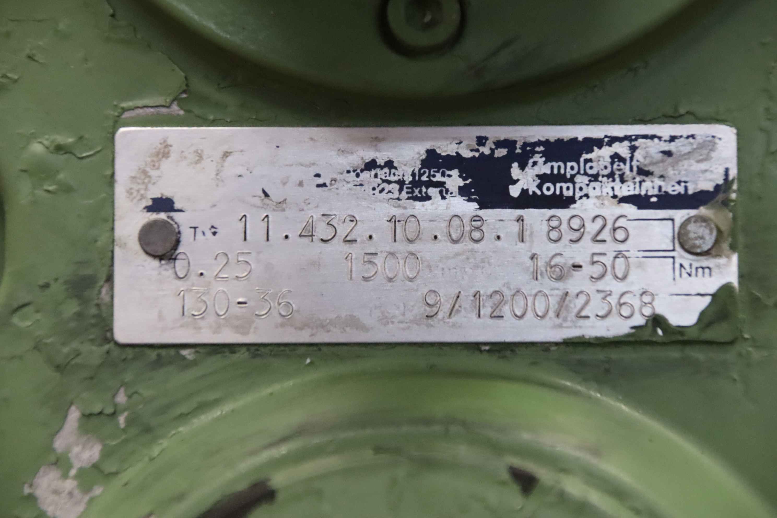 Maschinentyp: regelbarer Getriebemotor 0,25 kW 130-36 U/min