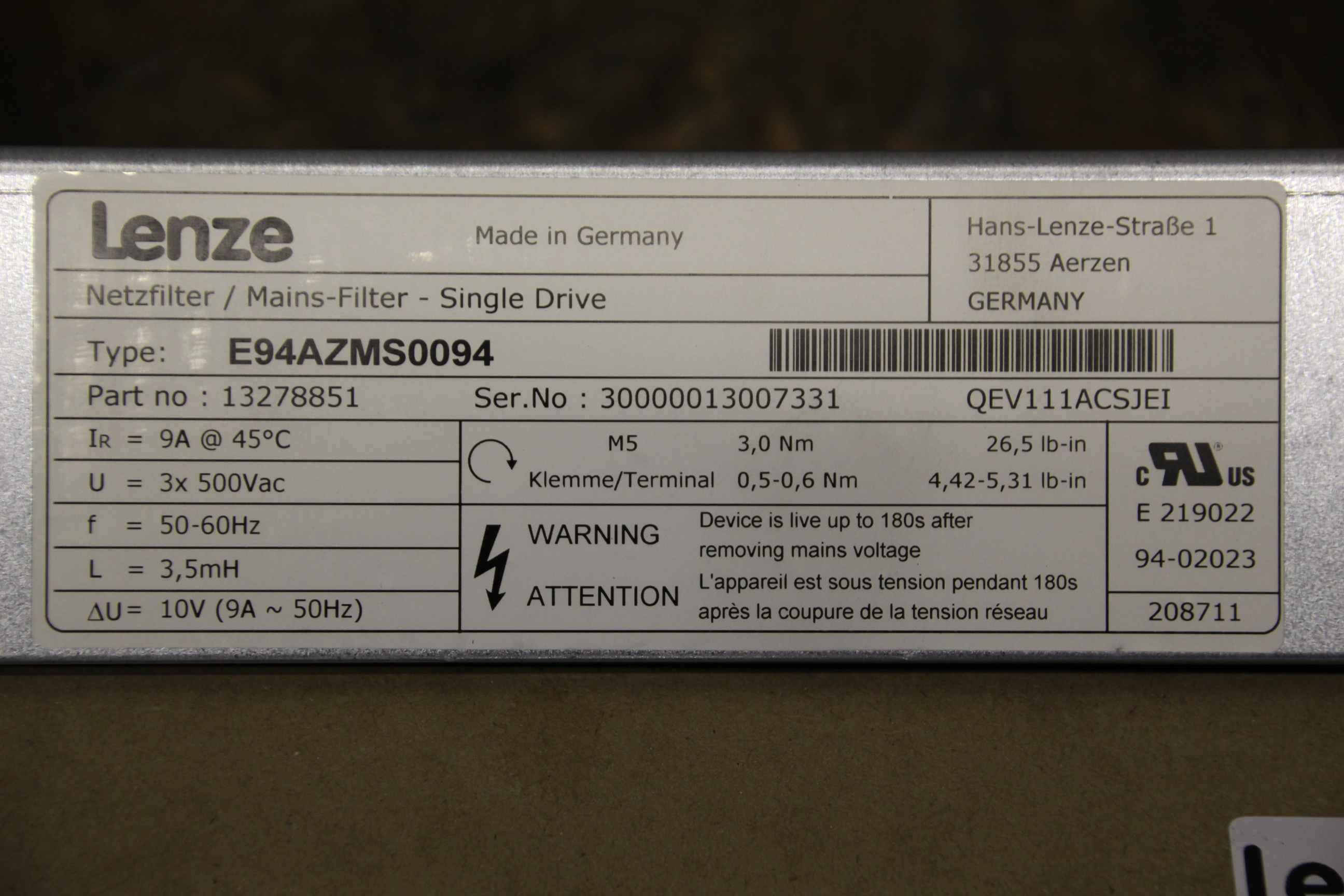 | LENZE | E94AZMS0094 13430982 |