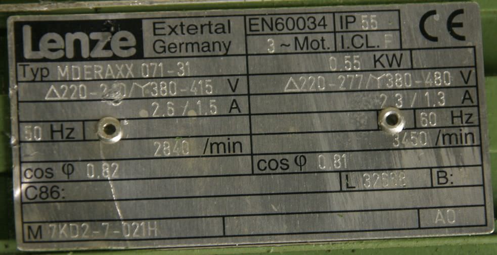 Maschinentyp: Getriebemotor 0,55 kW 189 U/min