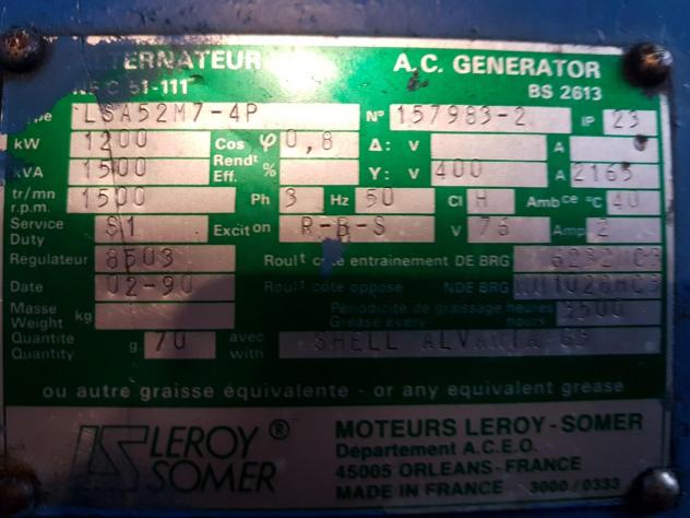 Hersteller: Leroy Somer 1500 KVA