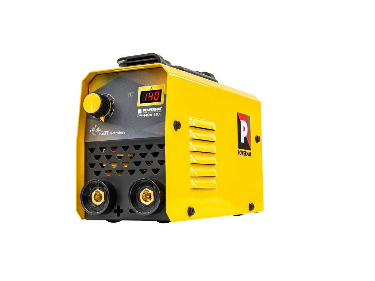 Inverter-Schweißmaschine Marke: POWERMAT Technische Daten: . Schweißmethode: MMA . Netzteil: 230 V / 50 Hz . Stromverbrauch: 5,8 kVA . Schweißstrombereich: 20 - 140 [A] . Schweißstrom, 100 % Schlaggrad: 108 A . Schweißstrom, 60 % Lastzyklus: 140 A . Nominaler Arbeitszyklus: 60 % . Elektrodendrahtdurchmesser: 1,6 - 4 mm Zustand: Neu