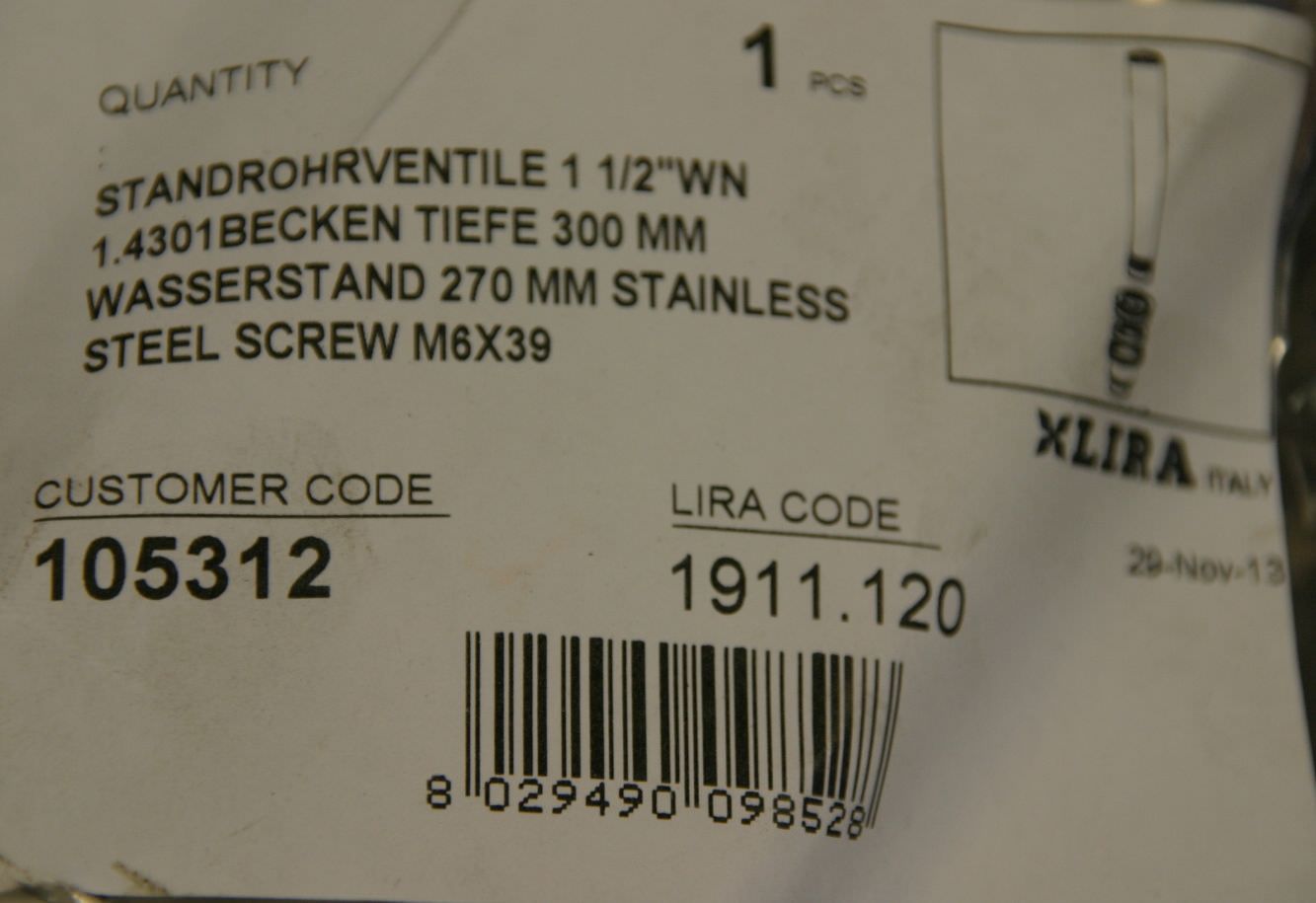 Maschinentyp: Standrohrventil für Waschbecken