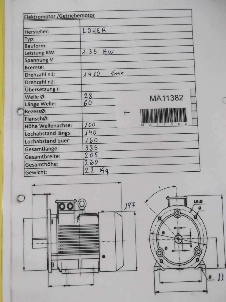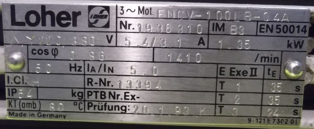 Maschinentyp: Elektromotor 1,35 kW 1410 U/min