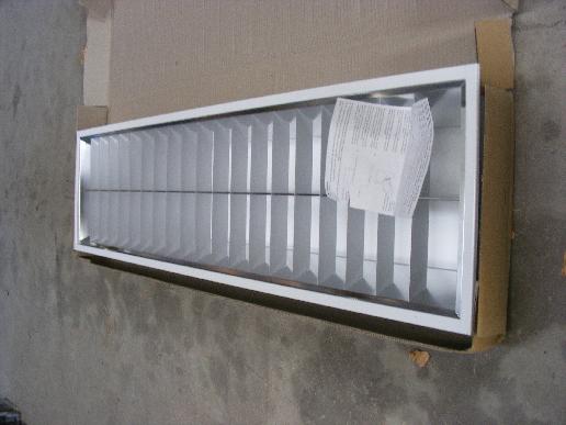 BAP-ALUrasterleuchte Maße L=1260 B= 325 Höhe=93 mm. Energiesparend durch Reflektor nur 1x36W VVG. Asymetrische Lichtverteilung z.B. für Schrankwand. Orginalverpackt, ungebraucht, Restbestand. Abverkauf.