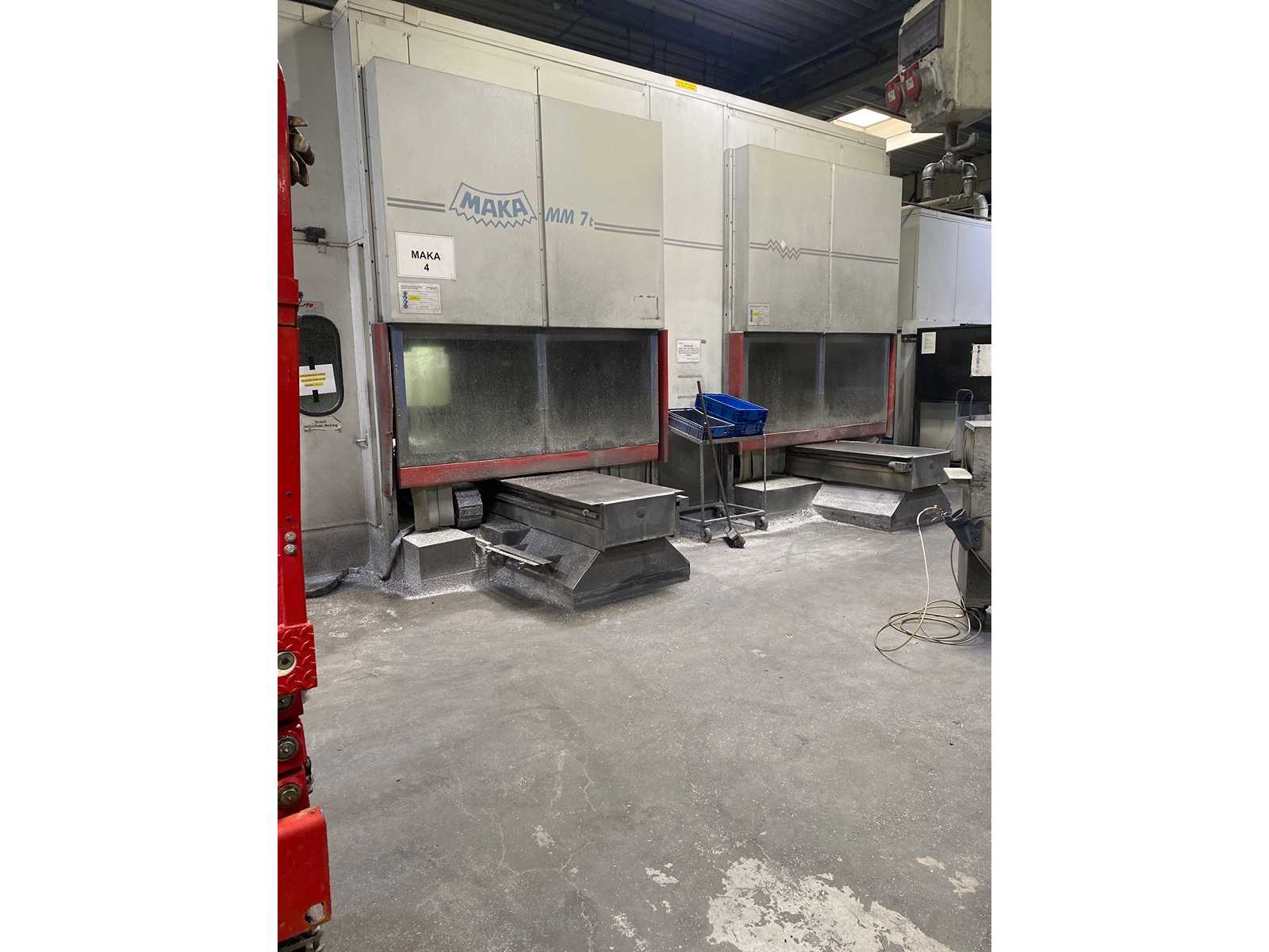 Diese 5-Achsen-MAKA MK 7 wurde 2007 hergestellt. Er verfügt über einen robusten 7000 kg schweren Rahmen, arbeitet mit 400 V/50 Hz und hat eine Nennleistung von 18,5 kW. Die Maschine verfügt über ein BWO 910 RC-Steuersystem und eine vielseitige HSK 63F Frässpindel. Das lineare Werkzeugmagazin enthält Werkzeuge und Sägeblätter, ergänzt durch einen Aluminiumtisch mit den Maßen 2000 x 1000 mm. Erwägen Sie die Gelegenheit, dieses horizontale Bearbeitungszentrum des MAKA MK 7 zu kaufen. Kontaktieren Sie uns für weitere Informationen.