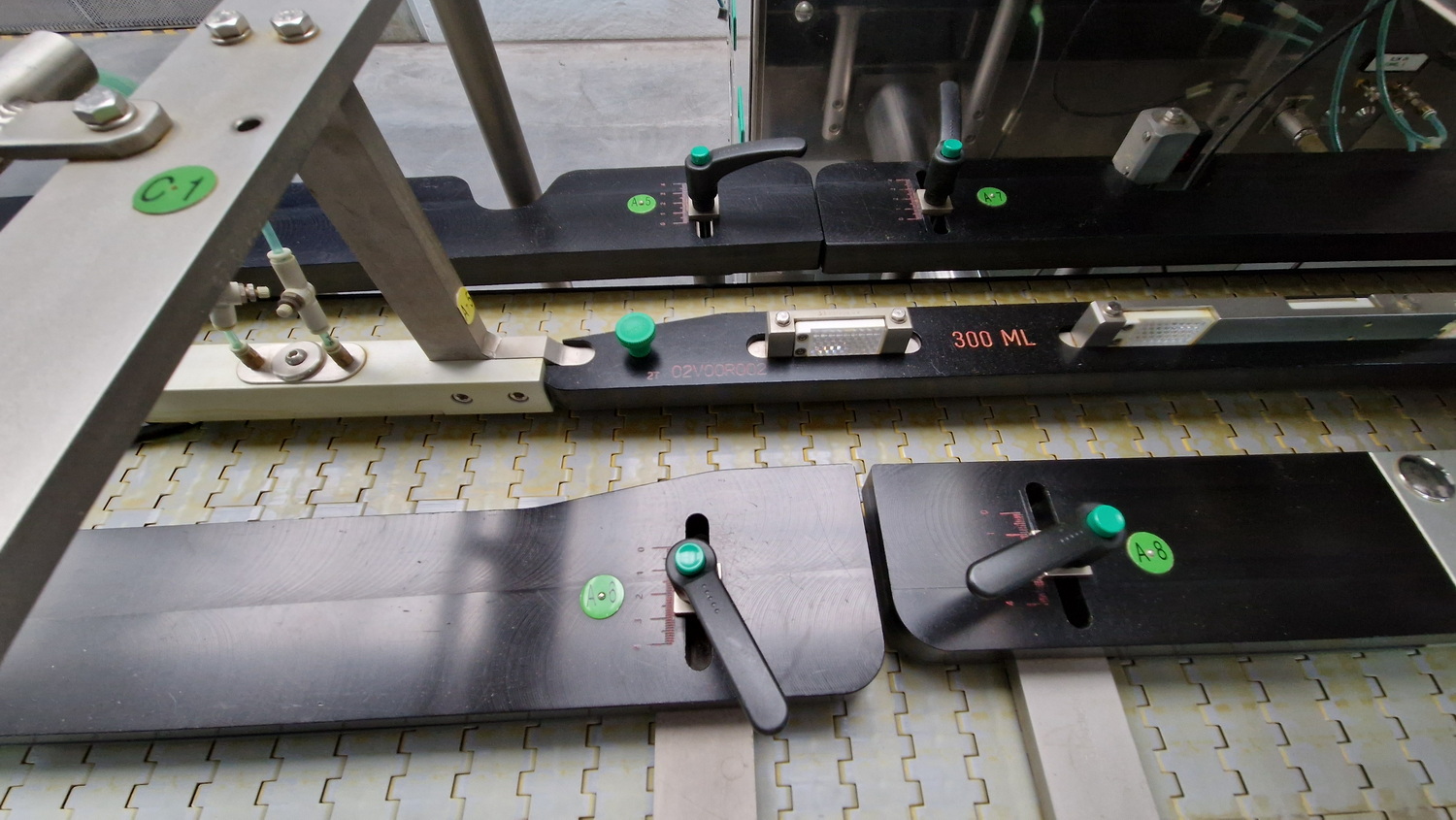 • 1-reihiger Behältnis-Ein- und Auslauf, 2-reihiger Durchlauf