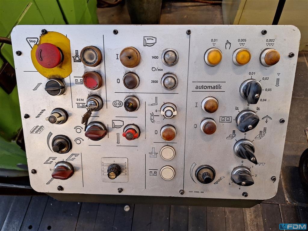 Drehdurchmesser über Bett: 500 mm Drehdurchmesser über Support: 310 mm Drehlänge: 3000 mm Drehdurchmesser in der Kröpfung: 750 mm Spitzenhöhe: 250 mm Drehzahl: 20-1000 U/min Anzahl der Drehzahlen: 18 Spindelbohrung: 56 mm Längsvorschub: 0,045-1,09 mm/U Planvorschub: 0,025-0,625 mm/U Anzahl der Vorschübe: 55 Gesamtleistungsbedarf: 4 kW Maschinengewicht ca.: 2,37 t Raumbedarf ca.: 4,9 x 1,1 x 1,3 m Maschine noch im Abgeberwerk: Elektrik 380 Volt: Dreibackenfutter: Forkard 315 mm Stahlhalter System Multifix: Typ C Kegeldreheinrichtung: Späneschutzhaube: Es handelt sich um eine gebrauchte Maschine, daher verkaufen wir unter Ausschluß jeglicher Gewährleistung. LAGERHALTENDER HAENDLER MIT EIGENEM LAGER VON 1600 m². Die Daten fü, dieses Inserat wurden erstellt mit ModulMWS - die Maschinenverwaltung von LogoTech oHG.