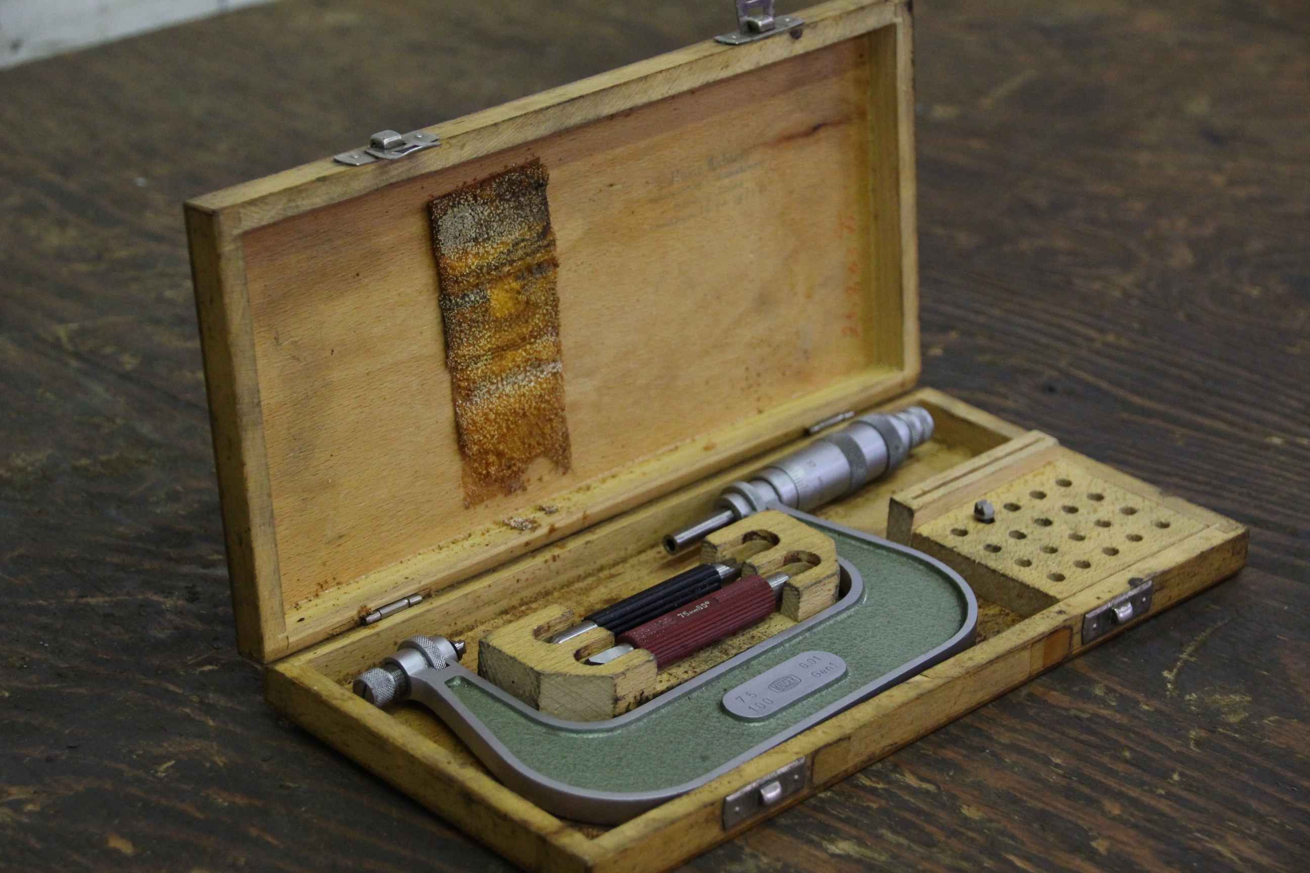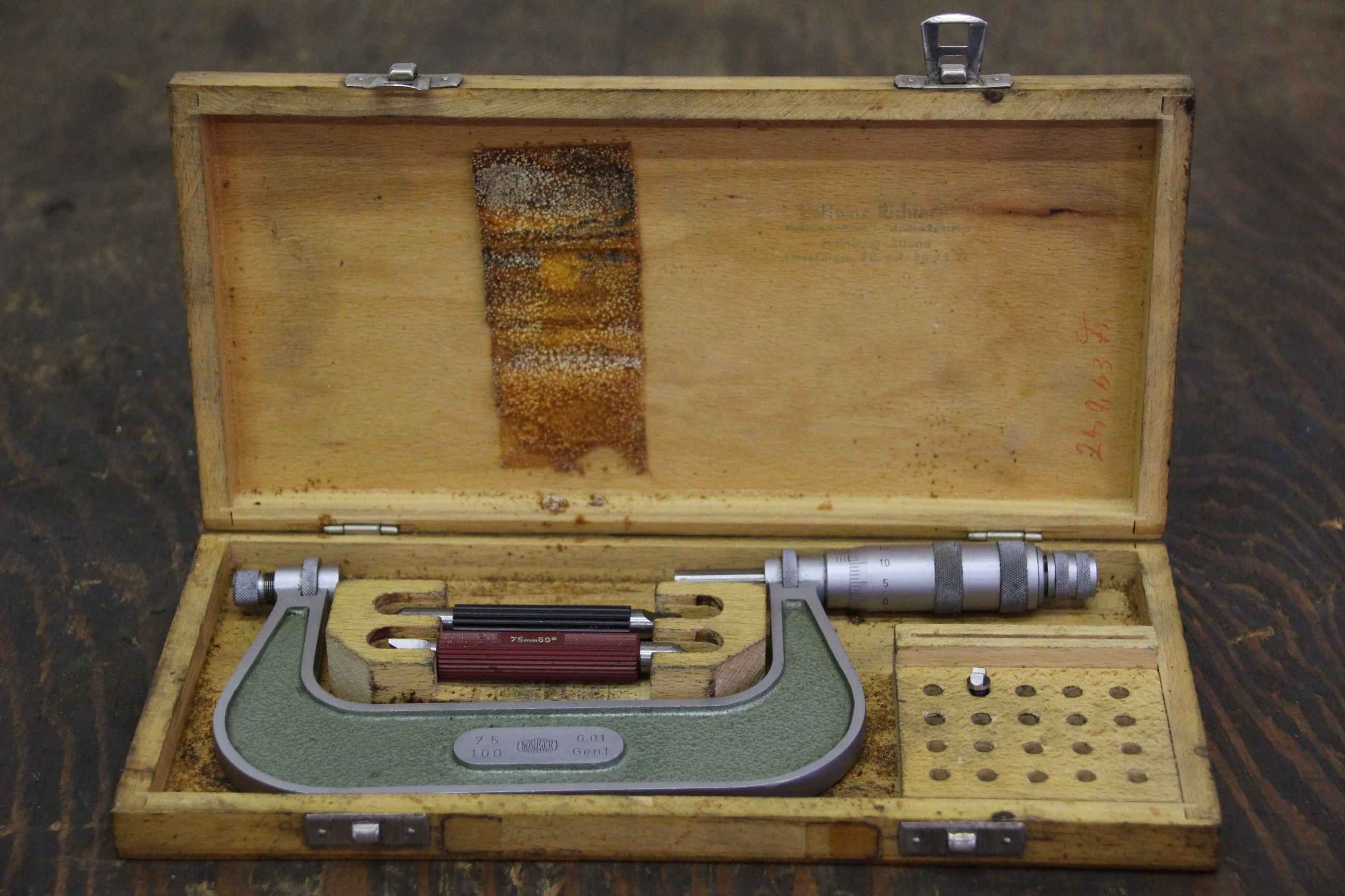 Bügelmeßschrauben, Mikrometer-Schraube -Messbereich: 75 - 100 mm -Zubehör: siehe Foto -andere Größen: vorhanden -Abmessung Kiste:265/125/H25 mm -Gewicht ges.: 0,8 kg