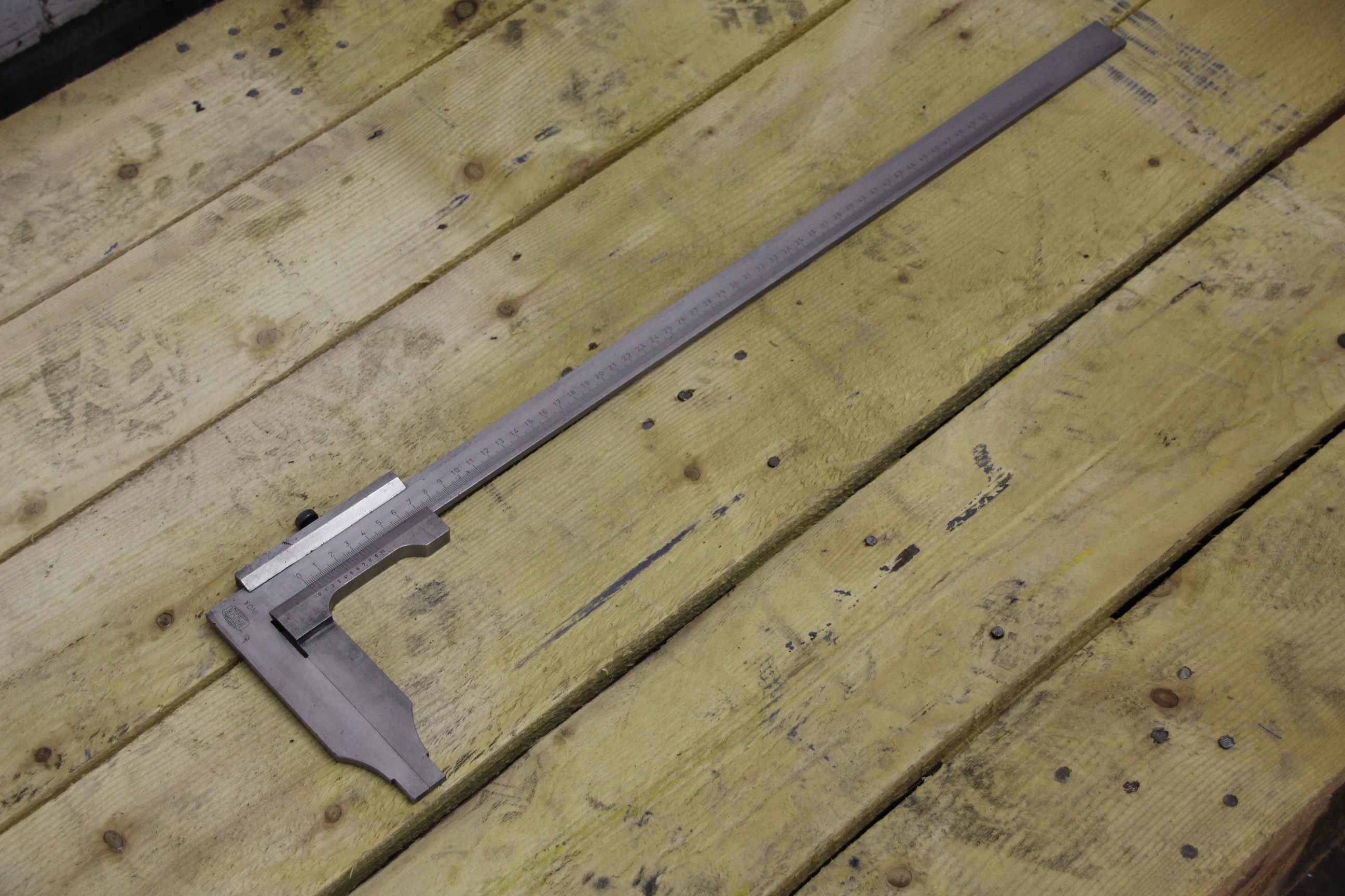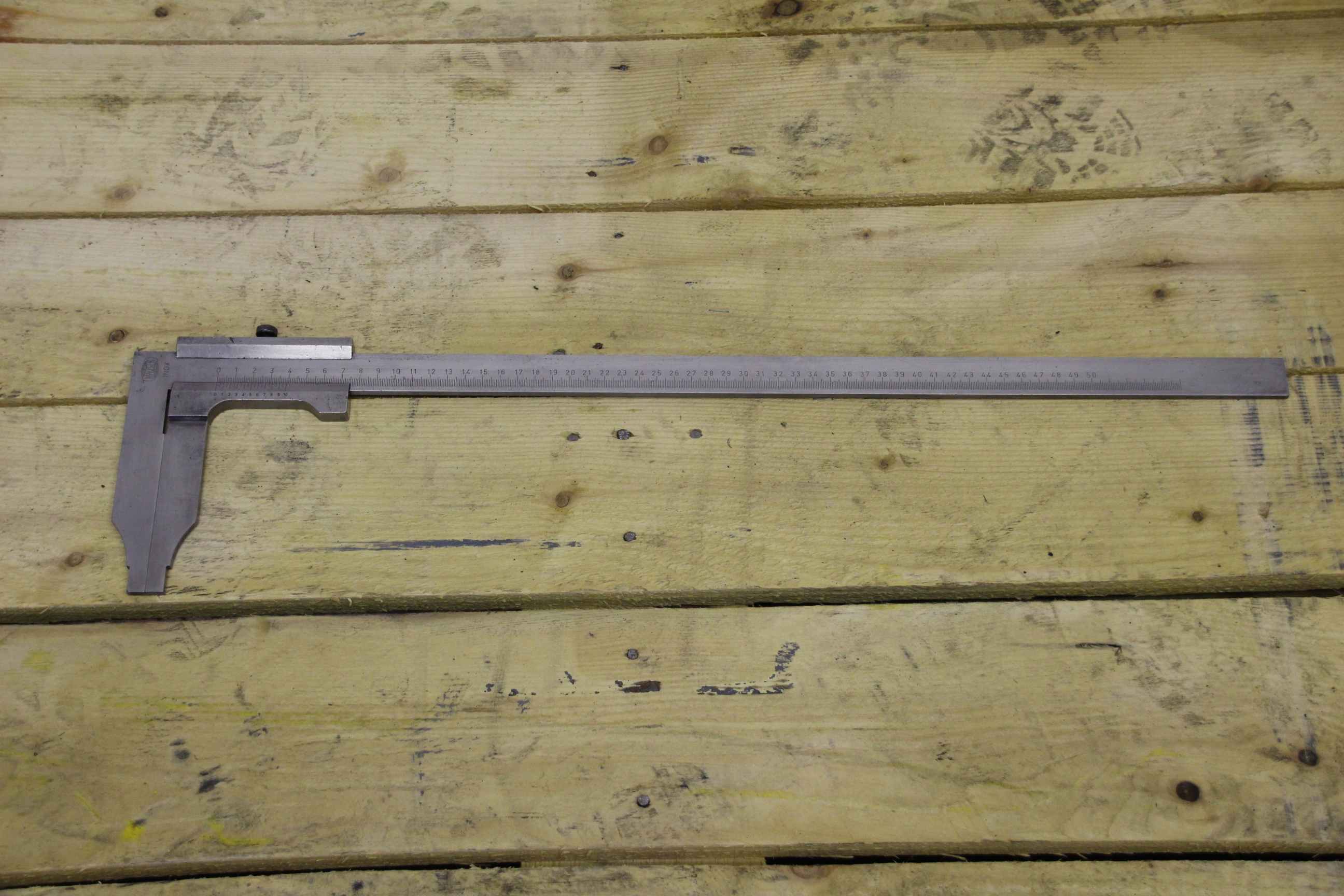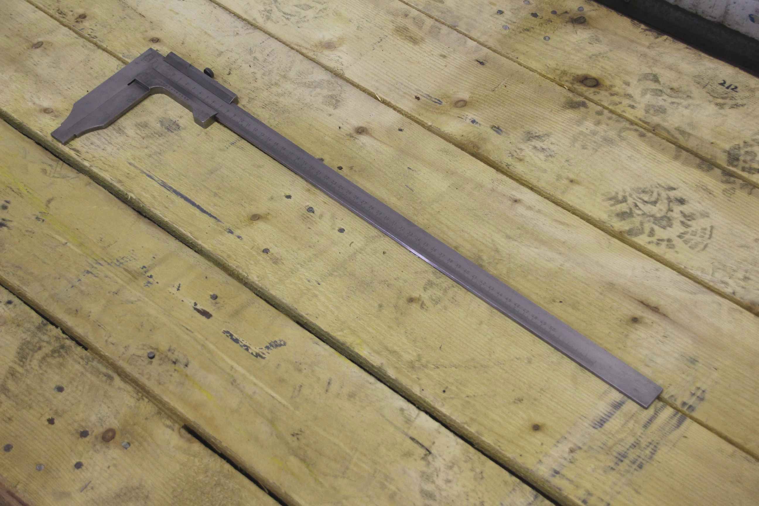 Meßschieber, Schieblehre, Messchieber -Hersteller: Mauser, Schieblehre Messschieber -Meßbereich: 0-500 mm -Nonius: 0,05 mm -Abmessung: 655/157/H11 mm -Gewicht: 1,0 kg