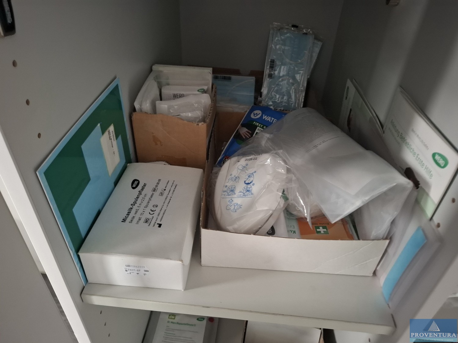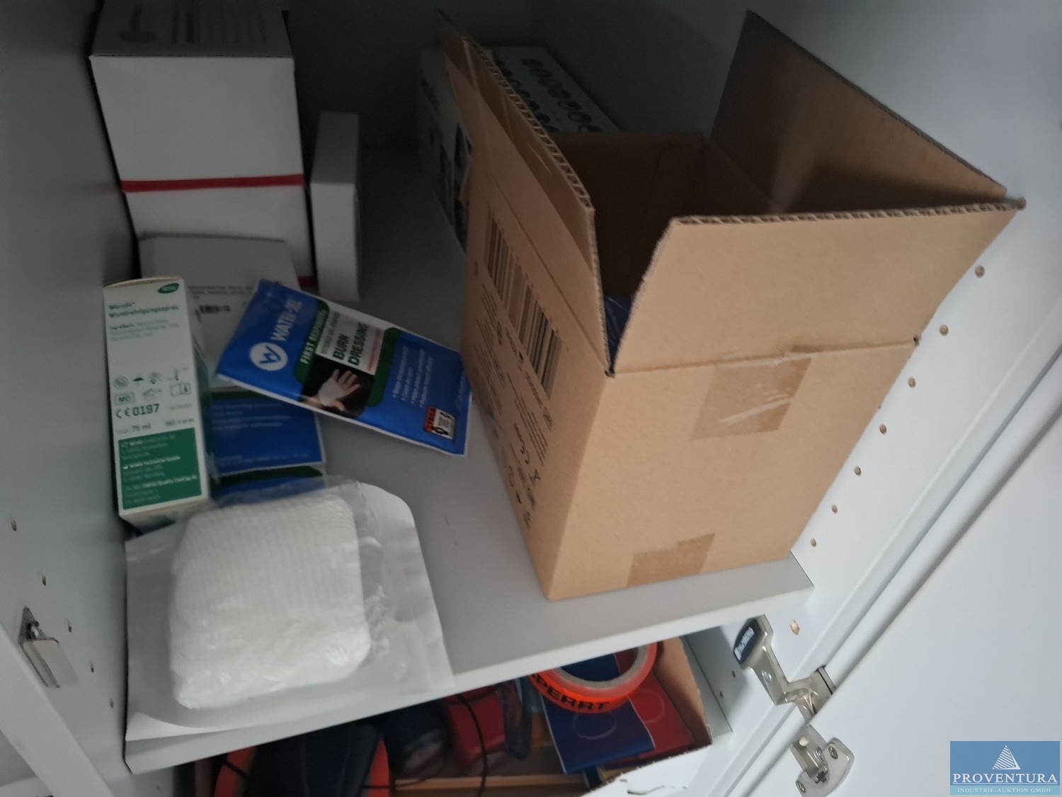 Medizinbedarf für Erste-Hilfe-Kästen Kompressen, FFP2-Masken, Fixierbinden, Augenkompressen, Schrankinhalt