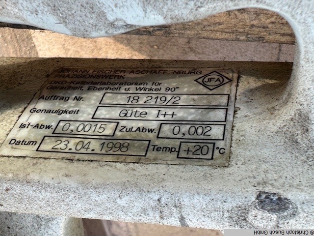 Granit Messplatte 760 x 1190 x 700 mm Maße: H x B x T 760 x 1190 x 700 mm Materialstärke: 800 mm Weitere Artikel - neu und gebraucht - finden Sie in unserem Shop! International shipping costs on request!