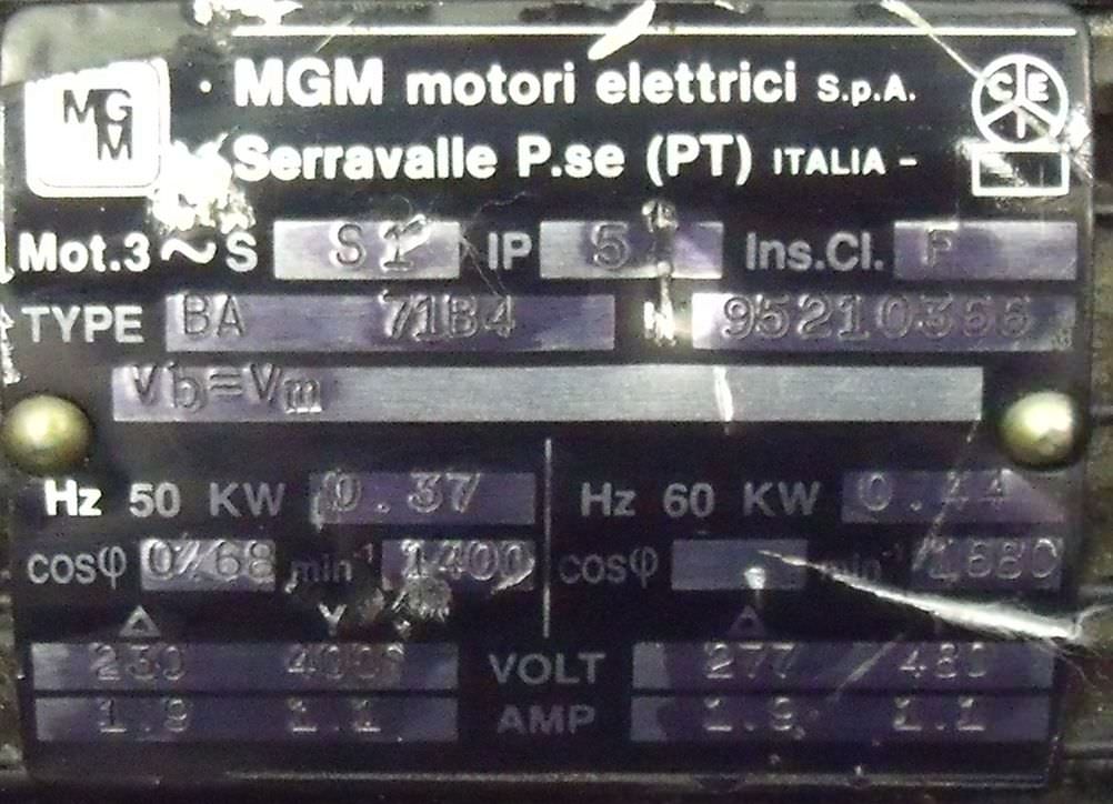 Maschinentyp: Elektromotor 0,37 kW 1400 U/min